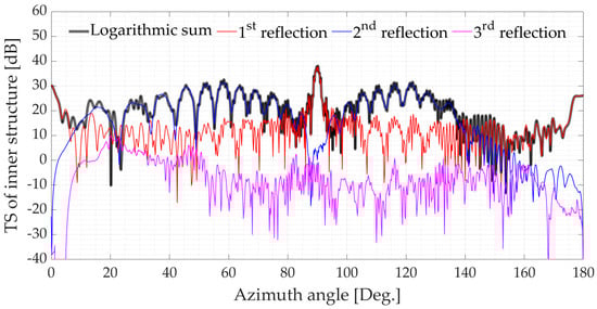 The TS analysis results for both outer and inner structures, which are considered as perfect reflectors, are shown in Figure 15 and Figure 16, respectively, including TS contributions of the 1st, 2nd, and 3rd reflection components.