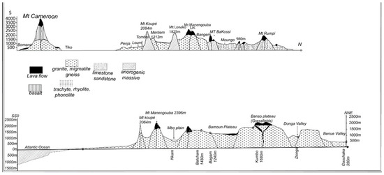 - Suh, C.E.; Sparks, R.S.J.; Fitton, J.G.; Ayonghe, S.N. The 1999 and 2000 eruptions of Mount Cameroon: Eruption behavior and petrochemistry of lava. Bull. Volcanol. 2003, 65, 267–281. [Google Scholar] [CrossRef]