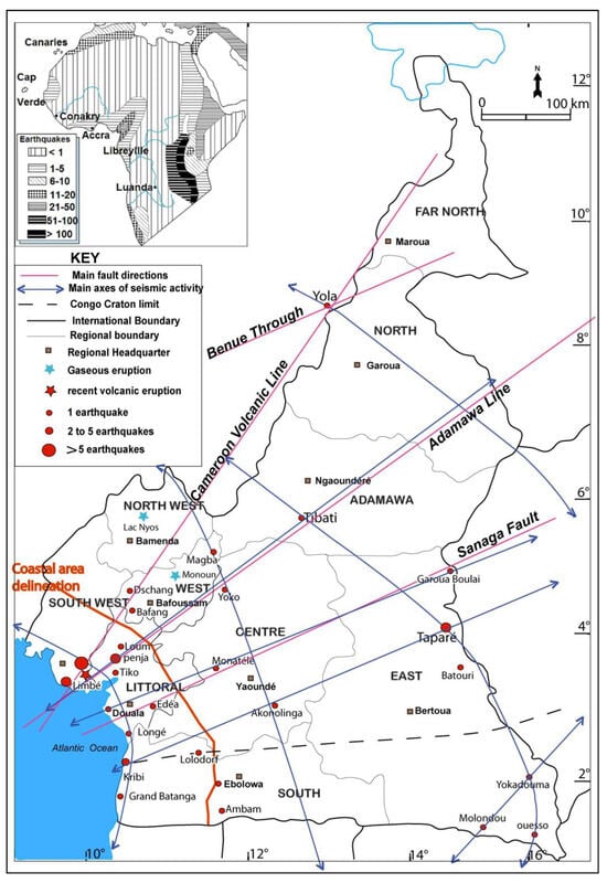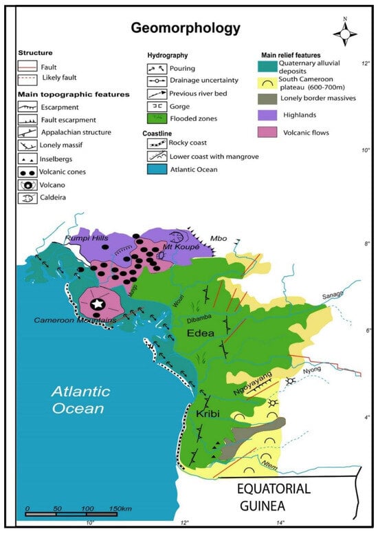 Figure 3. Cameroon coastal geomorphology (source: adapted from Tchindjang [36]).