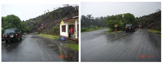 - Ayonghe, S.N.; Suh, C.E.; Ntasin, E.B.; Samalang, P.; Fantong, W. Hydrologcally, seismically and tectonically triggered landslides along the Cameroon Volcanic Line, Cameroon. Afr. Geosci. Rev. 2002, 9, 325–335. [Google Scholar]