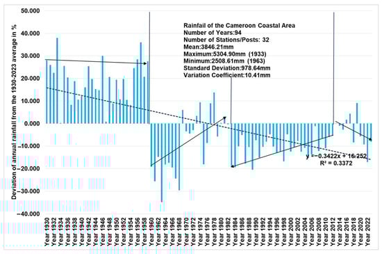 - Tchindjang, M.; Amougou, J.A.; Abossolo, S.A.; Bessoh Bell, S. Challenges of climate change, landscape dynamics and environmental risks in Cameroon. In Landscape Evolution, Neotectonics and Quaternary Environmental Change in Southern Cameroon; Runge, J., Ed.; Palaeoecology of Africa; Taylor & Francis Group: London, UK, 2012; Chapter 5; Volume 31, pp. 237–286. [Google Scholar]
