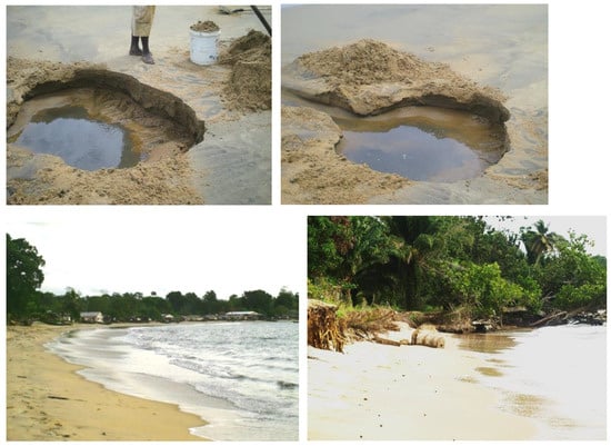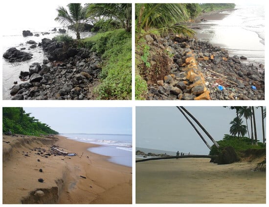 - Mbevo Fendoung, P.; Tchindjang, M.; Hubert Ferrari, A. Weakening of Coastlines and Coastal Erosion in the Gulf of Guinea: The Case of the Kribi Coast in Cameroon. Land 2022, 11, 1557. [Google Scholar] [CrossRef]