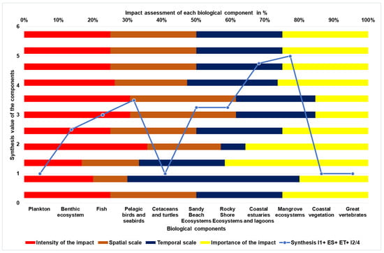 In addition to these equations, the critical grid is also used in risk assessment to measure risks and define spaces based on how common and how serious they are. Crossing severity and frequency yields the critical grid, also known as the risk assessment matrix chart (Table 4). It estimates how bad an event could be and how likely it is given each task’s risks. This information helps you make an informed decision about how to reduce risk. It also lists the possible severity and likelihood of an event, with clarifying words in each group to help figure out the real risk that comes with the hazards for a certain task. The rank of severity and frequency levels—safe (green), acceptable (blue), tolerable (yellow), and unacceptable (orange and red color)—applied to the risk areas is defined before starting the risk identification and analysis process. Such a quantitative or qualitative assessment will take into account the perceptions of climate change among individuals and actors. Perception helps to apprehend human behavior in the face of climatic hazards (flight, displacement, panic, death, resettlement, etc.). Therefore, the resulting critical grid is scaled to 5 degrees (1–5): minor, low, medium or moderate, high or critical, very high or catastrophic. From there, we establish a threshold set at the value 12 (Table 4 and Appendix A Figure A1), from which the vulnerability is significant and important. We must explicitly declare that we conducted the evaluation randomly by chance. The severity of any hazards is just as important as the frequency and may depend on the context. A critical grid was used to connect the needed alert to the high level of vulnerability found by combining severity and frequency. This risk matrix helps in assessing the vulnerability of every type of identified hazard: geohazards, meteorological hazards, and man-induced hazards in the coastal area.