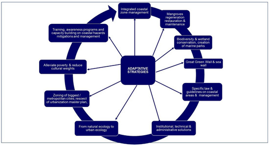 As far as urbanization is concerned, some West African countries have almost the same level of urbanization: Cameroon (52%), Senegal (41%), Mauritania (41%), Ivory Coast (40%), Benin (35%), and Guinea (32%) [33]. Rising sea levels cause coastal flooding and erosion, as well as the loss of coastal habitats that naturally protect the coastline from storm surges. The loss of these habitats increases the number of people at risk.