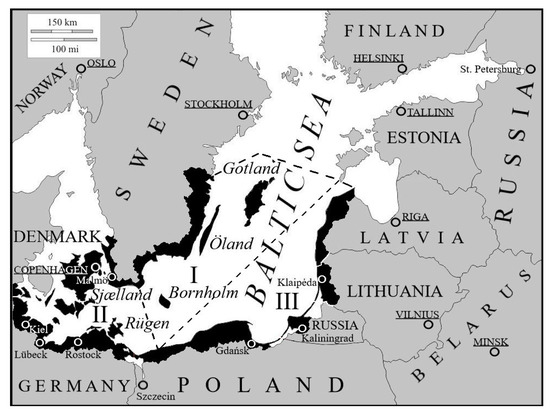 South Baltic Seaside Region: I—Southeast Scandinavian coast and islands; II—South Baltic coast and islands; III—Southeast Baltic graded coast.