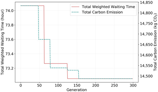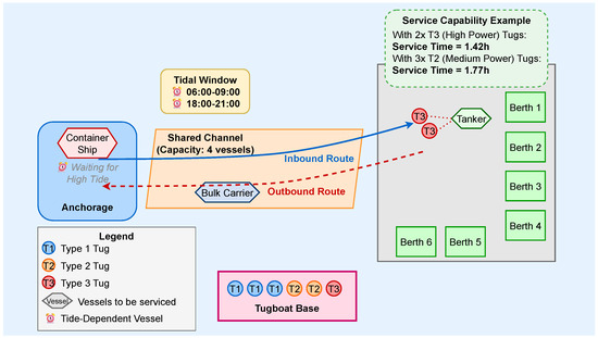 As critical hubs in the global supply chain, a port’s competitiveness and sustainability are directly impacted by the efficiency and carbon emissions of its tugboat scheduling. This paper addresses the scheduling optimization of heterogeneous tugboat fleets, aiming to balance these dual objectives. A Mixed-Integer Linear Programming (MILP) model is constructed to minimize vessel waiting time and total carbon emissions, considering key real-world constraints such as tidal windows and channel capacity. Given the model’s complexity, an improved multi-objective evolutionary algorithm is designed, which significantly enhances the performance for solving large-scale instances. A case study based on actual data from Xiamen Port shows that the proposed model and algorithm can effectively generate a series of Pareto-optimal schedules, providing a decision-making basis for port authorities to achieve green and efficient tugboat scheduling. Full article