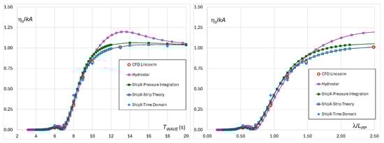 The present paper reports the comparison of the ship motions and added resistance assessment using high fidelity RANSE simulations in virtual towing tank LincoSim, using 2D strip theory as implemented in ShipX v4.4.0 and 3D BEM potential flow software Hydrostar v8.2.1. All calculations are performed for a medium-sized RoPax ferry of Levante Ferries fleet, which operates daily routes in the Ionian Sea. Calculations by ShipX are performed in frequency domain (using strip-theory and direct pressure integration) and in time domain. The high-fidelity RANSE seakeeping modeling is based on the open-source CFD code OpenFOAM v12 using a standardized framework, tailored to take advantage of HPC facilities and based on a forcing zone formulation. The CFD simulations are performed for six wave periods in head and beam seas at the constant wave height of 3 m. Comparison of the obtained results shows that potential-flow methods are very efficient and reliable tools, suitable for the massive calculations in the first stages of the project. High-fidelity RANSE modeling seems to be more suited for selected cases such as analysis of roll and added resistance in beam waves. Full article