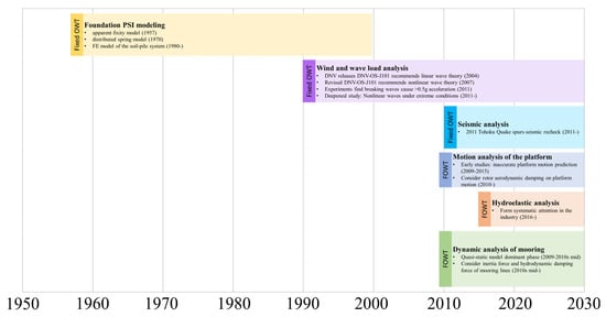 Offshore wind turbines (OWTs) are being developed with larger capacities for deeper waters, facing complex environmental loads that challenge structural safety. In contrast to onshore turbines, OWT foundations must withstand combined hydrodynamic forces (waves and currents), leading to substantially higher construction costs. For floating offshore wind turbines (FOWTs), additional considerations include radiation hydrodynamic loads and additional hydrodynamic damping effects caused by platform motion. Dynamic analysis of these foundations remains a critical bottleneck, presenting new challenges for offshore wind power advancement. This article first introduces the main structural types of OWT foundations, with case studies predominantly from China. The remaining part of the article proceeds as follows: dynamics of fixed OWT foundations, dynamics of FOWT foundations, and conclusions. Next, it covers several important topics related to fixed offshore wind turbines, including pile–soil interaction, wave loads, and seismic analysis. It then discusses support platform motion analysis, hydroelastic analysis, and mooring system characteristics of floating offshore wind turbines. Finally, it presents some insights to improve design and optimization methods for enhancing the safety and reliability of offshore wind turbines. This research clarifies OWT foundation dynamics, helping researchers address challenges and optimize designs. Full article