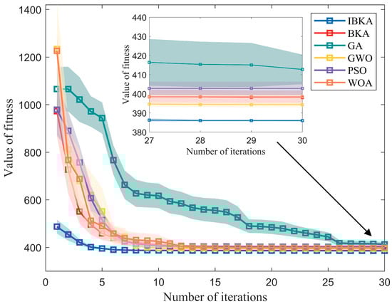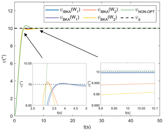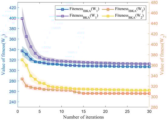 This study proposes an improved Black-winged Kite Algorithm (IBKA) for the parameter optimization of the Model Predictive Control (MPC) controller in Autonomous Underwater Vehicles (AUVs). To tackle the optimization challenges associated with the weight matrices and prediction horizon in the MPC controller, IBKA innovatively integrates the Lens Opposition-Based Learning (LOBL) strategy with the BKA. Specifically, after the migration behavior of BKA, the LOBL strategy is introduced to generate new individuals, and on this basis, the optimal individual is retained as the leader of the black-winged kite. In the experimental scenarios of AUV heading control and depth tracking, the optimization effect of the IBKA-MPC controller is evaluated. The results indicate that, in the heading control experiment, for the MPC controller optimized by IBKA, the Integral of Absolute Error (IAE) and Integral of Time-weighted Absolute Error (ITAE) of the heading angle decreased by a maximum of 6.29% and 18.24%, respectively, compared with the MPC controller under non-optimized parameters. In the depth tracking experiment, for the MPC controller optimized by IBKA, the IAE and ITAE of the depth decreased by 91.86% and 94.78%, respectively, compared with the MPC controller under non-optimized parameters. Meanwhile, through comparative experiments with four classical optimization algorithms, it is verified that the IBKA with the LOBL strategy introduced has a better optimization effect on the parameters of the MPC controller than classical optimization algorithms. Full article