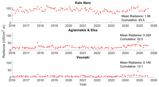 Artificial light at night (ALAN) is impacting sea turtle nesting around the globe by decreasing the nesting attempts, disorienting the sea turtle hatchlings while trying to find the sea, and disrupting hatchlings’ offshore migration. In the Mediterranean Sea, the shoreline of Kyparissia Bay is considered the most important nesting site for loggerhead sea turtles (Caretta caretta), with several thousand nests on an annual basis. The current study reports for the first time the exposure of the core 10 km of nesting area to ALAN pollution, evaluates the potential impact on sea turtle conservation, and discusses mitigation measures as coastal urbanization and touristic activity increase rapidly in the region. Our findings demonstrate that most of the core area was not impacted by ALAN pollution, although a specific region (Kalo Nero) was subjected to high illumination at night, leading to reduced sea turtle nests and potential threats to hatchlings. Full article