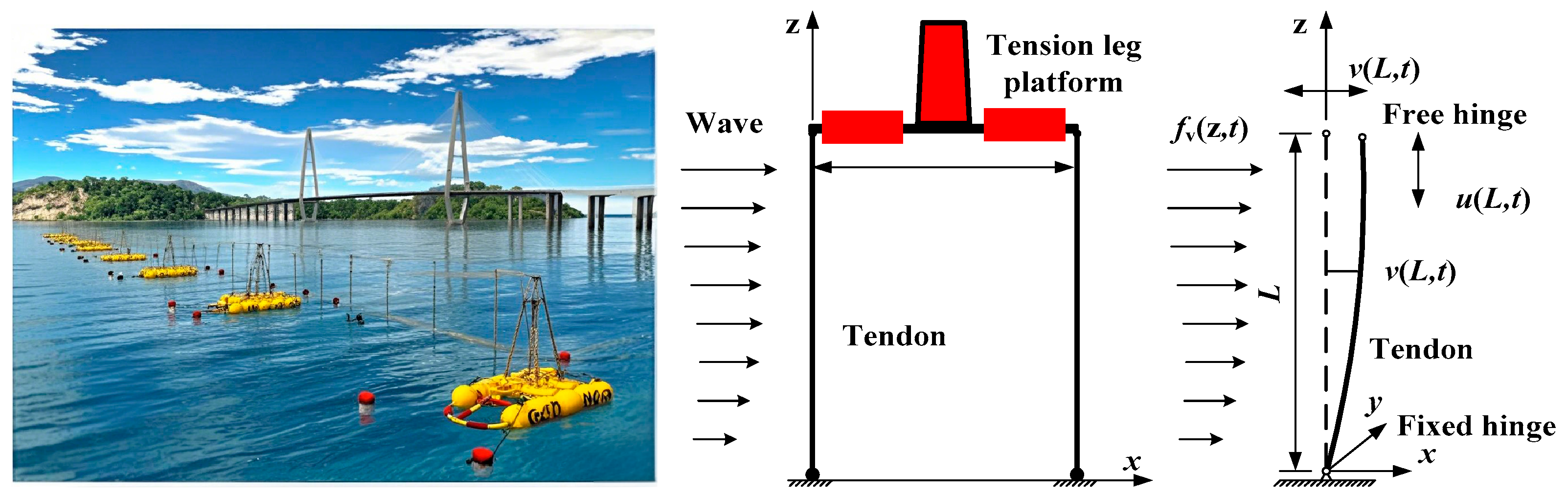 - Gadagi, M.M.; Benaroya, H. Dynamic response of an axially loaded tendon of a tension leg platform. J. Sound Vib. 2006, 293, 38–58. [Google Scholar] [CrossRef]