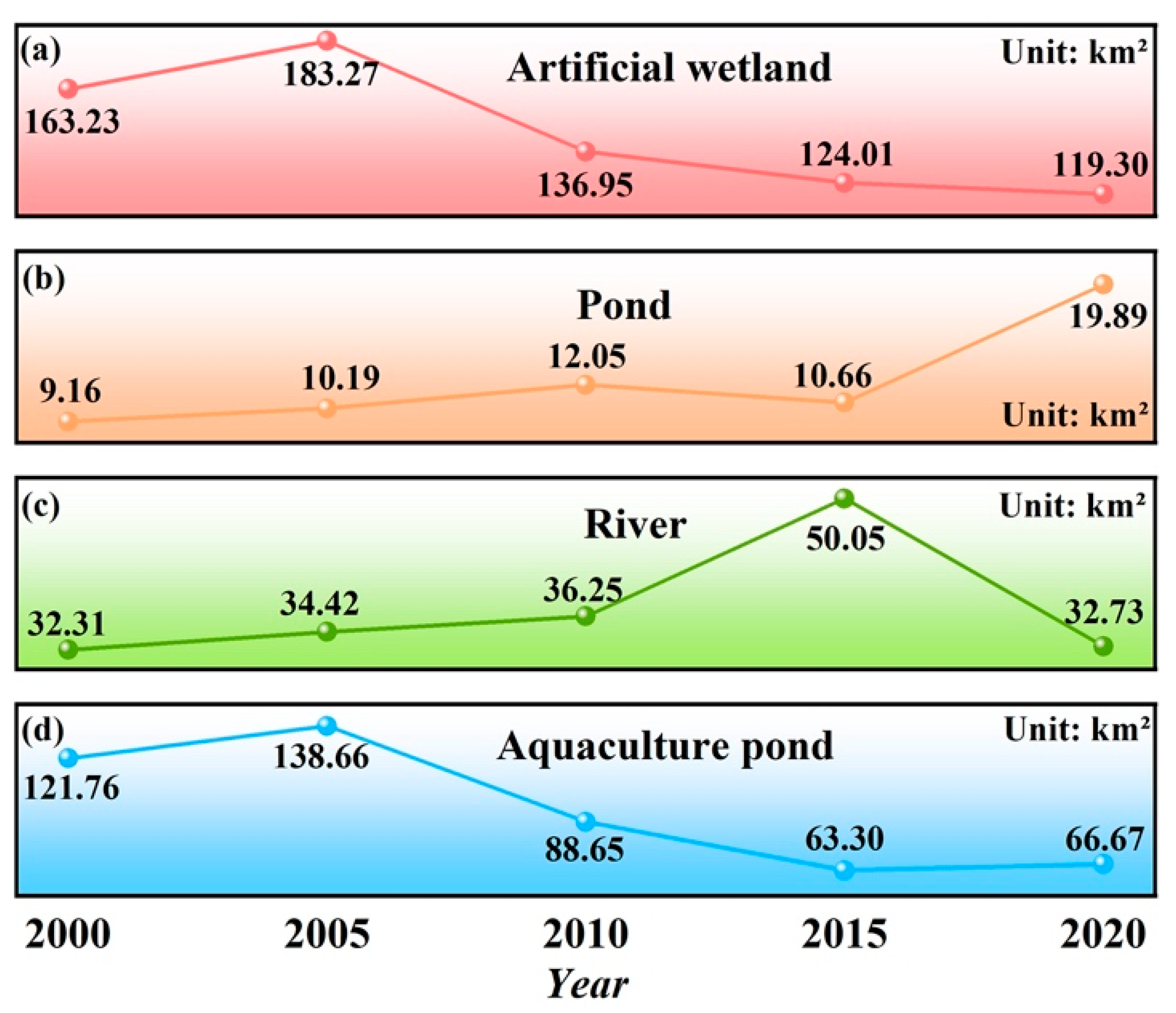 - Bian, H.; Li, W.; Li, Y.; Ren, B.; Niu, Y.; Zeng, Z. Driving forces of changes in China’s wetland area from the first (1999–2001) to second (2009–2011) National Inventory of Wetland Resources. Glob. Ecol. Conserv. 2020, 21, e00867. [Google Scholar] [CrossRef]