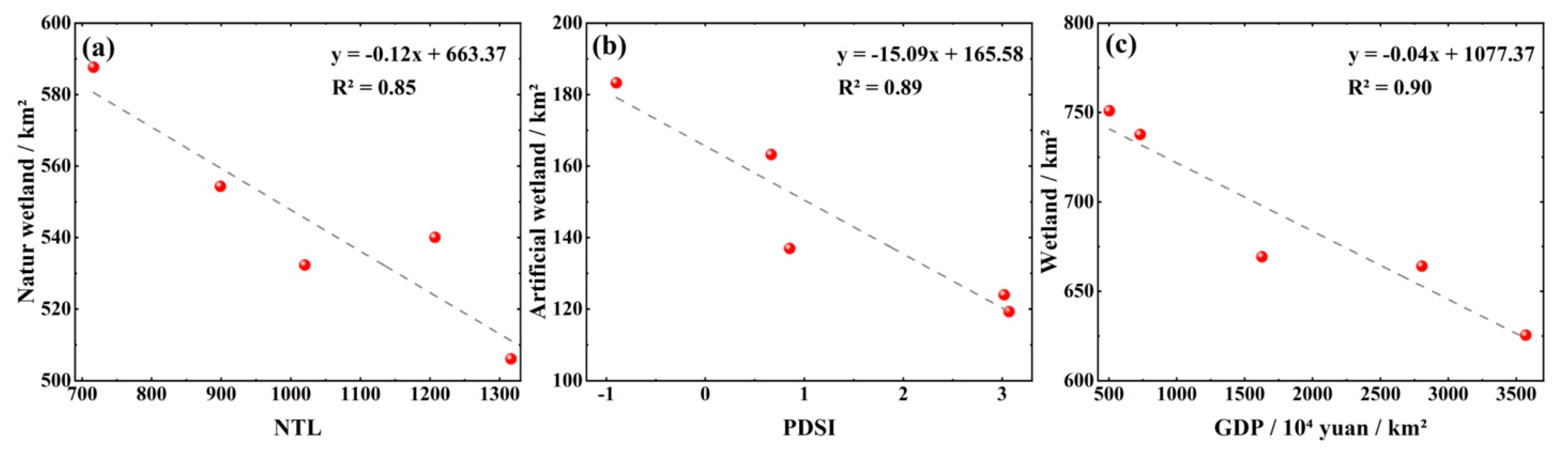 3.3. Patterns and Processes of Wetland Landscape Transformation