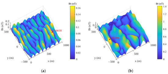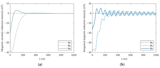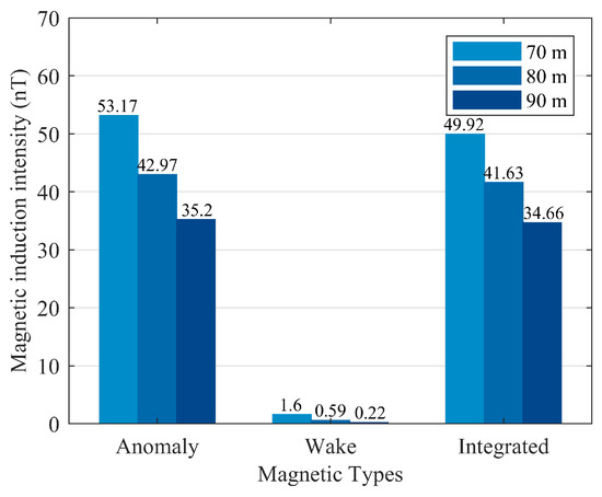 The basic parameters of a specific underwater vehicle at a given location can be identified, and this information enables the quantitative calculation of the magnetic anomaly intensity induced by the hybrid model by using Equation (16).