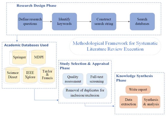 In terms of specific technical implementation, after establishing relevant paper topics, we selected databases from Springer, MDPI, ScienceDirect, and IEEE covering the period 2020–2025. We conducted retrieval and filtering at both the application layer and data layer. Application layer keywords included image recognition, path planning, collision detection, and green shipping. Data sources encompassed images, AIS (Automatic Identification System), radar, and other multifaceted data types. From 500 articles, we selected relevant papers, categorized them by methodology and technical objectives, analyzed their common technical characteristics, and compared their accuracy. The methodological framework for the systematic literature review’s execution is as shown in Figure 1.