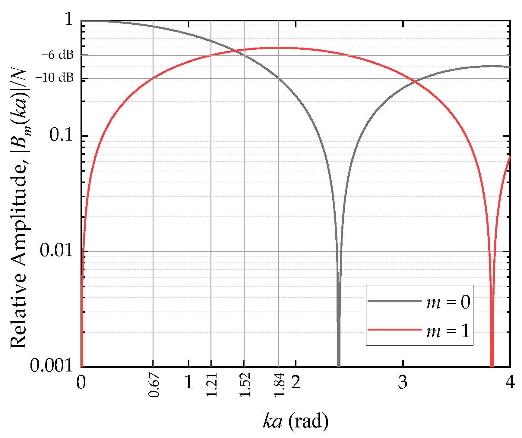 The two main structure parameters of the transmitting array can now be summarized. One is the product of the wave number and array radius, ; the other is the number of array elements, .