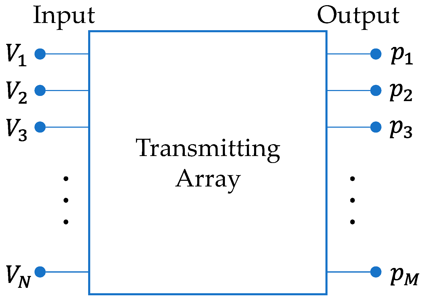 The phase error compensation method is based on a liner input–output model of the transmitting array system, which begins at the electrical voltages input to the array elements and ends at the generated acoustic field, as shown in