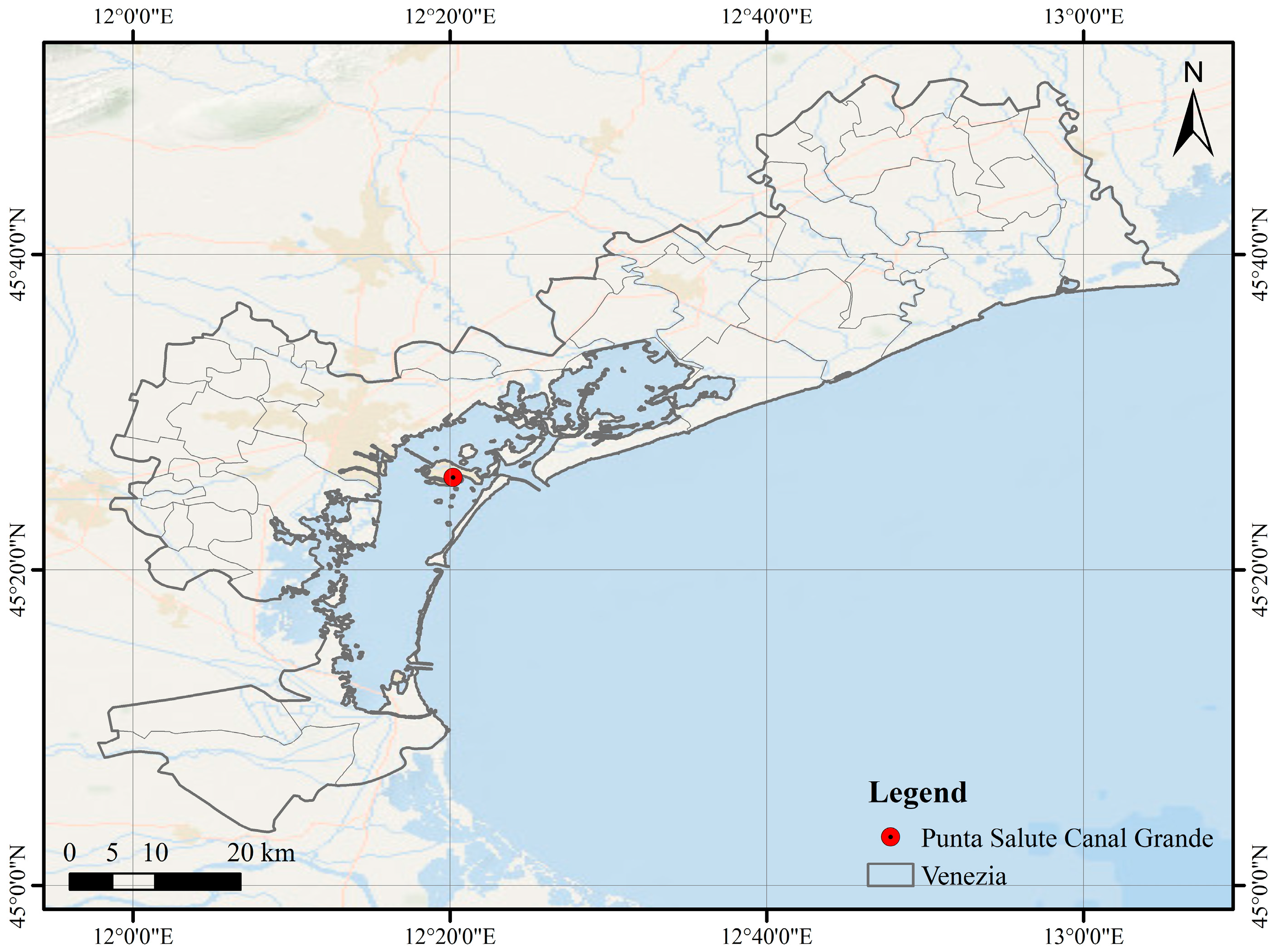 From 29 October to 30 October 2018, extreme tidal levels were recorded at the Punta Salute Canal Grande tidal station. On 28 October, a high tide of 1.21 m was observed at 13:00, followed by a high tide of 1.54 m at 15:00 on 29 October. A third abnormal high tide occurred at 20:00 on 29 October, reaching 1.41 m.