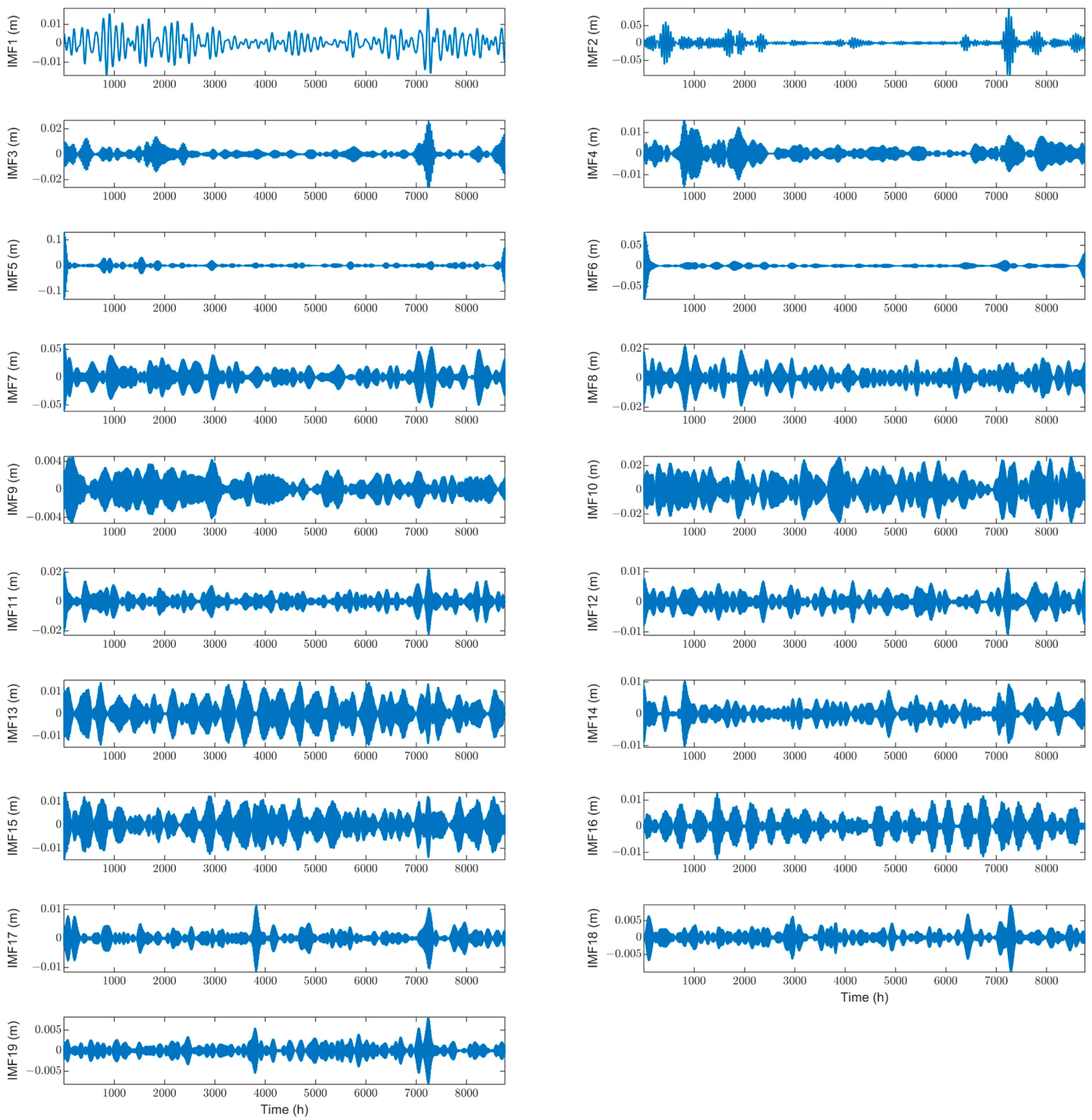 Figure 7 shows the time-domain plots of the 6 modes and one residual decomposed from the original tidal signal.