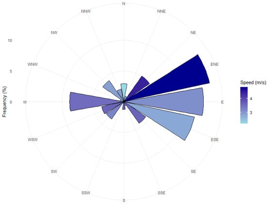 Table 4 contains meteorological data showing the frequency and average wind speed from different directions around Pula in 2023 [45].