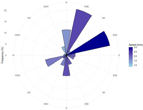 • Frequency (%): Percentage of time the wind blows from this direction.