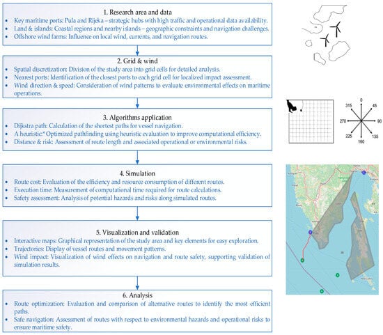 In addition, the study further develops navigational risk assessment methods by integrating wind measurements and obstacle modelling, contributing to increased safety in complex port areas and near OWFs [21,32,34]. This creates a novel framework for sea route optimisation that combines empirical data with theoretical algorithms and increases the practical applicability for planning safe and energy-efficient trajectories.
