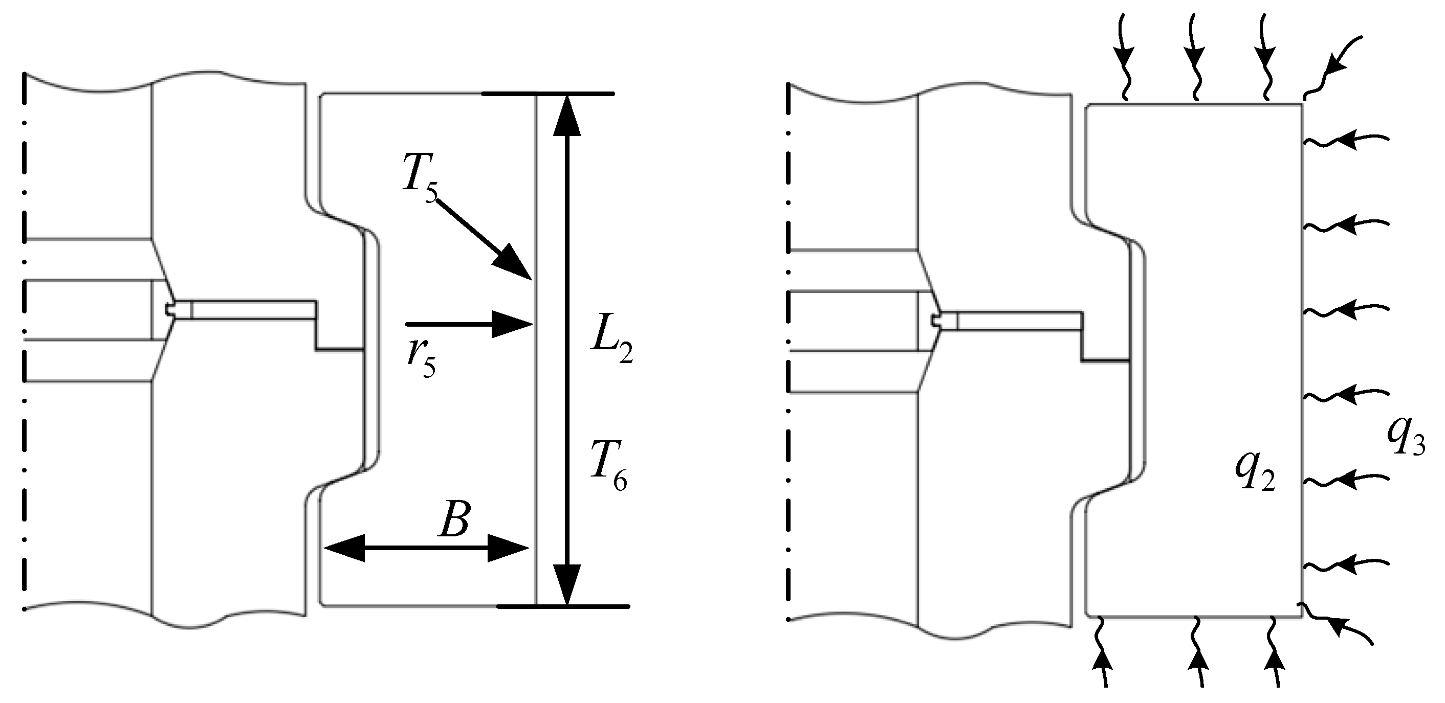 17]. However, neither the inner surface of the clamp segment nor the outer surface of the flange is a flat surface, which may cause other surfaces to interfere with energy exchange. To accurately describe the energy transfer efficiency between the two surfaces, the view factor is introduced; the value of the view factor mainly depends on the geometric state of the two heat transfer surfaces, and it only represents the percentage of energy transfer between the two surfaces, without involving the energy absorption capacity of the surfaces. For the heat transfer model between the flange and the clamp, it is simplified to the heat transfer problem between two concentric cylinders, and the view factor is expressed as follows: