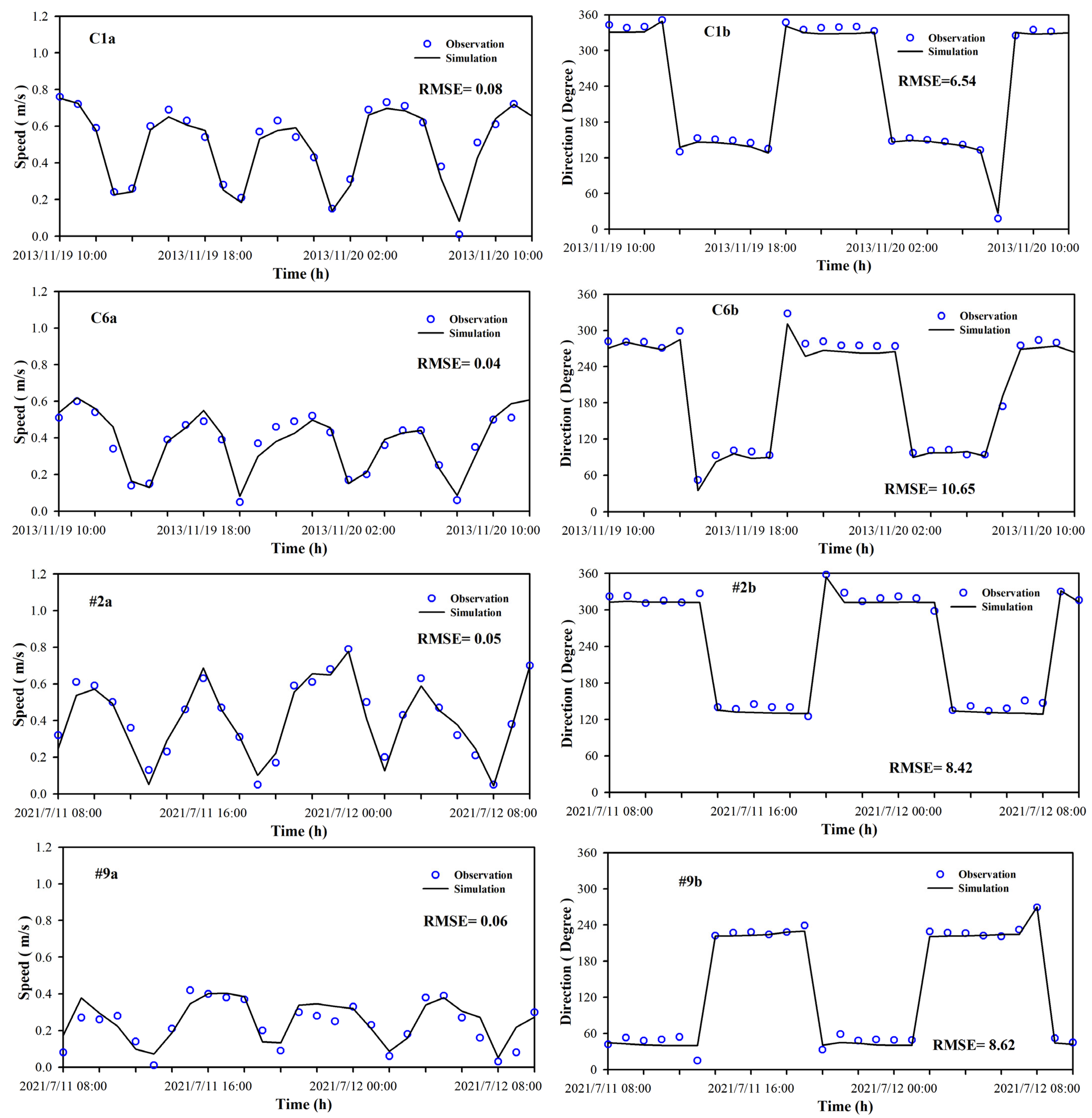 3.2. Distribution of the Tidal Current Field