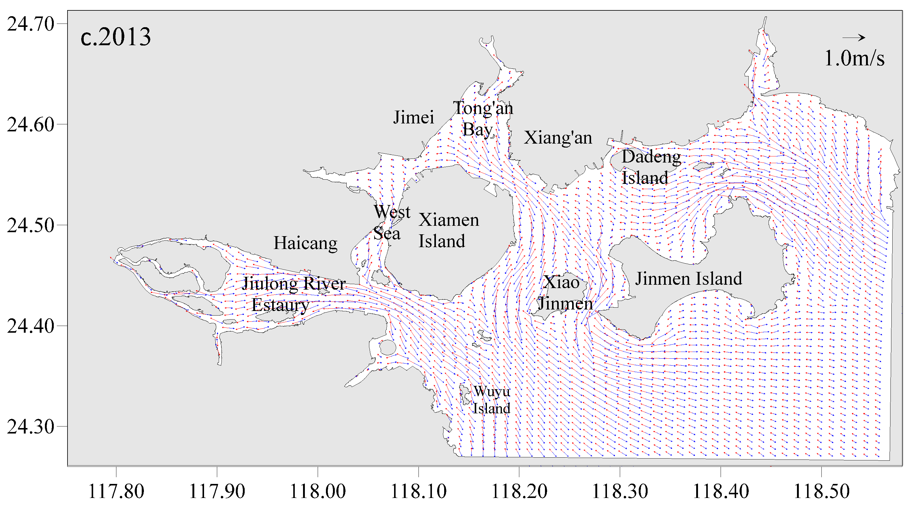 Xiamen Bay (XMB), situated on the western coast of the Taiwan Strait, has an average water depth of 7 m, and spans approximately 21 km from east to west and 6.5 km from north to south (