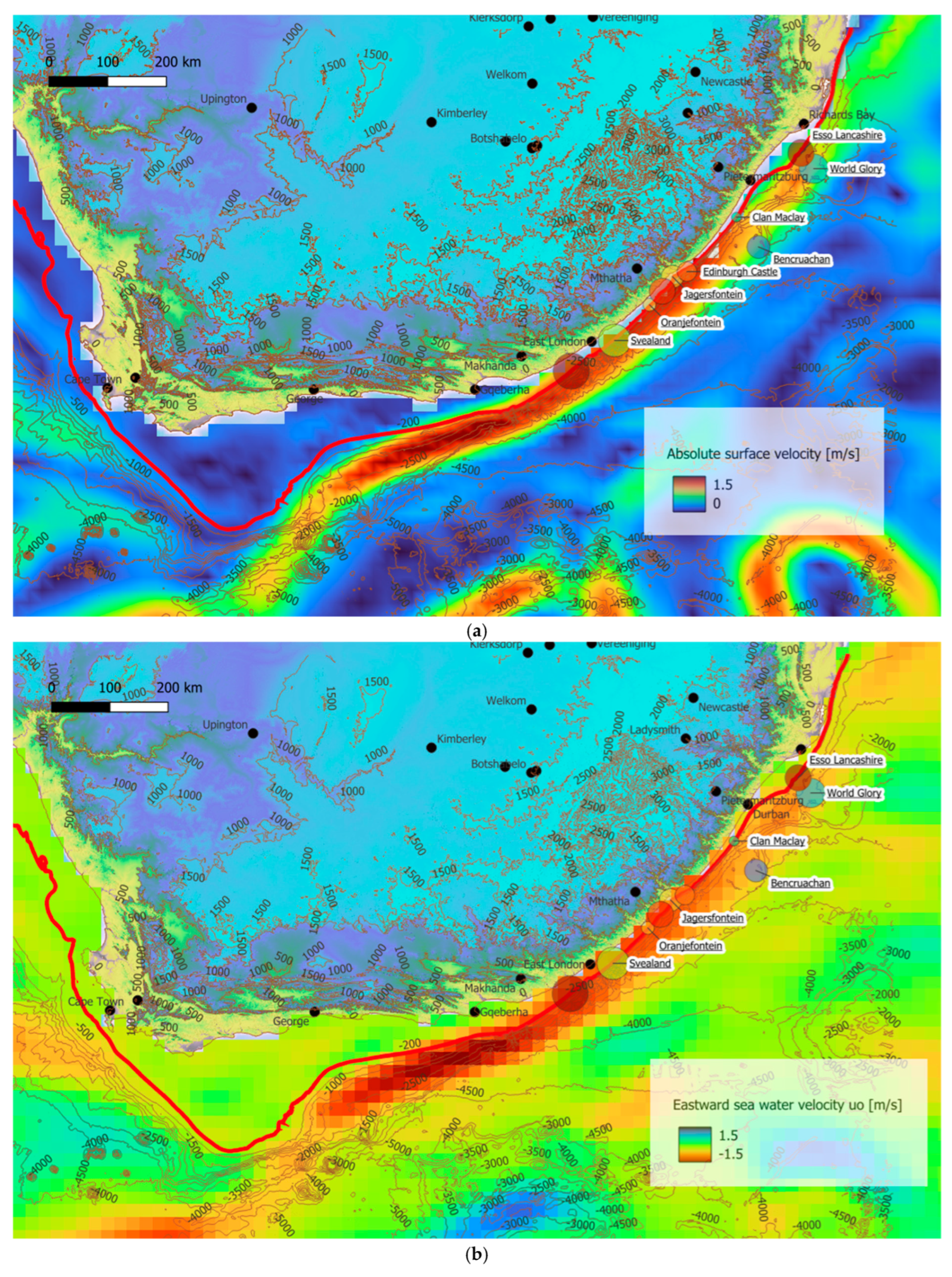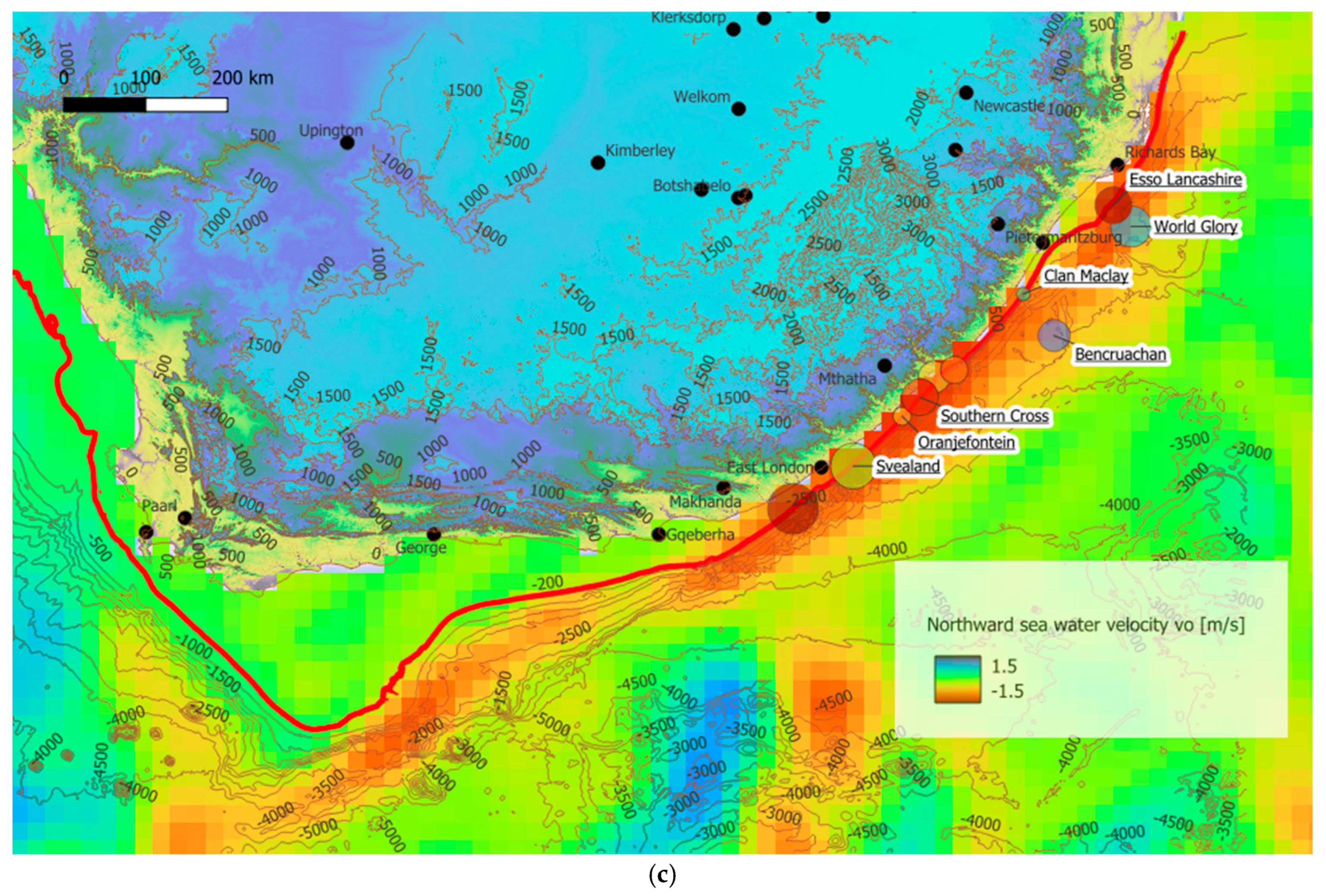 4.2.12. Water Vortices from Movement of the Agulhas Current Along the Continental Slope
