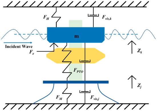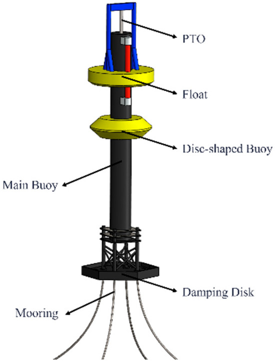 20] proposed a two-body WEC consisting of a surface-floating streamlined float and a deep-draft slender cylindrical buoy. The streamlined geometry reduces viscous energy dissipation and enhances motion response characteristics. For such WECs, the mass increase of the outer float or damping plates on the inner buoy [