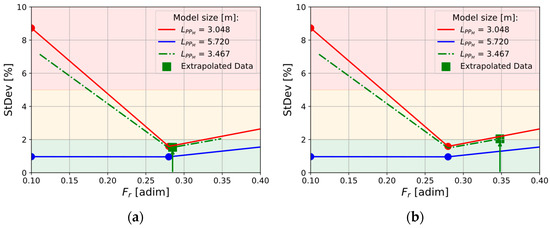 The two hulls have been considered in order to carry out the V&V procedure for the total resistance and addressing in an in-depth analysis of the dependency of on speed change and on the percentual deviation of the error, , among EFD results and CFD calculations, evaluated through (56), with a particular focus on its sensitivity to this kind of approach implemented to estimate it.