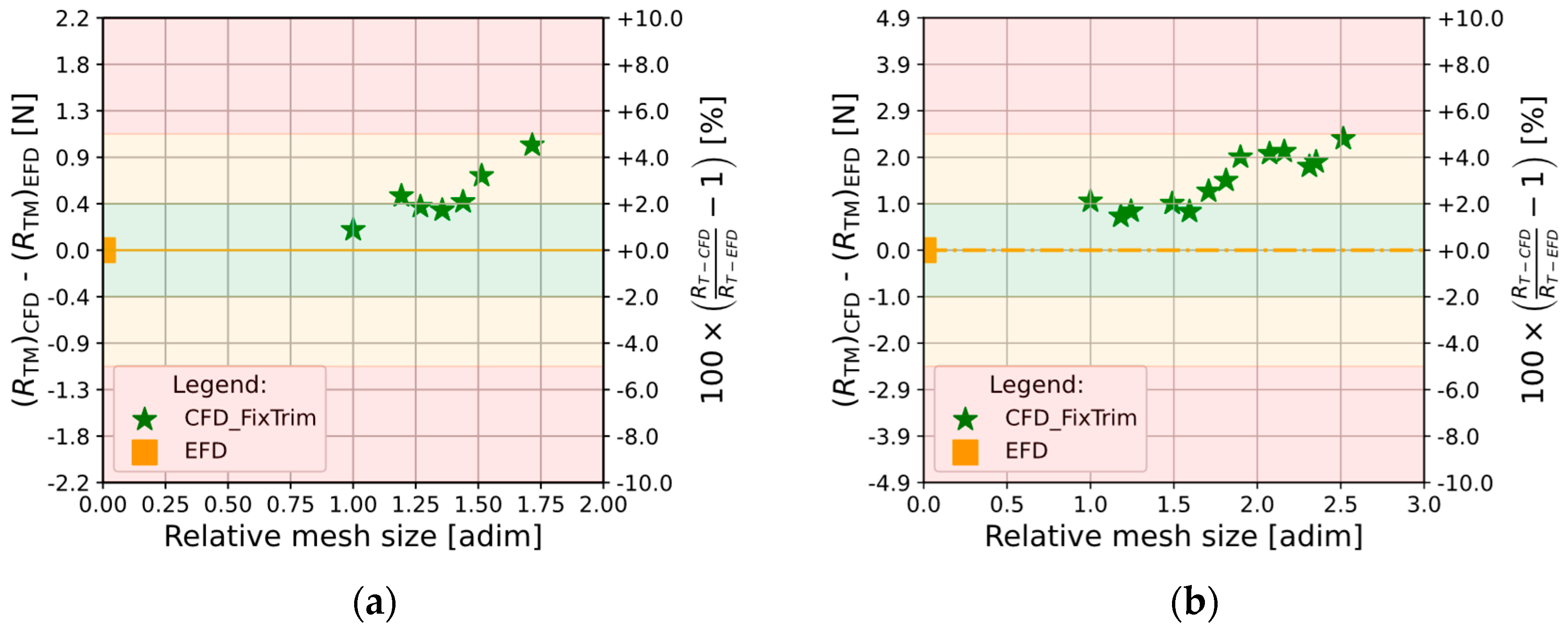 - Bozzo, S.; Ferrando, M.; Villa, D. Analysis of the virtual towing tank accuracy by means of a new EFD database. In Proceedings of the 21st International Conference on Ships and Maritime Research (NAV 2025), Messina, Italy, 18–20 June 2025; IOS Press Ebooks: Amsterdam, The Netherlands, 2025; pp. 241–251. [Google Scholar]