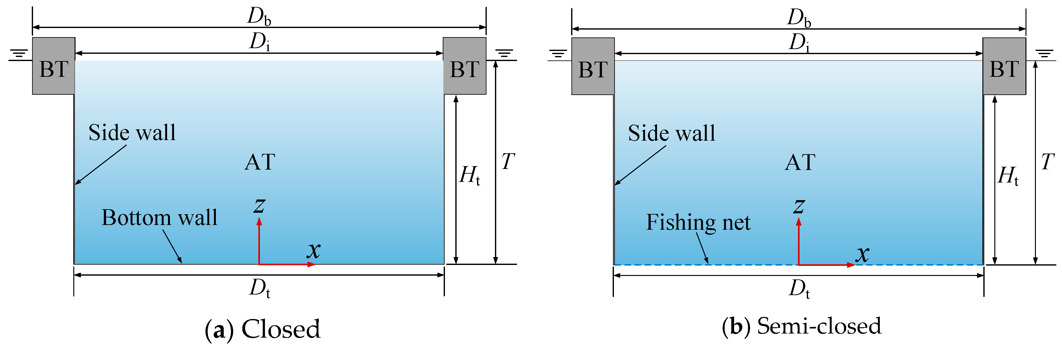 8], a closed fish cage can be opened at the bottom to reduce the recirculating water supply by some natural exchanges with the external water. These semi-closed fish cages with rigid sidewalls combine the advantages of closed fish cages with traditional open fish cages. Research on the aforementioned novel aquaculture equipment remains limited, and its practical application is still in the exploratory stage.