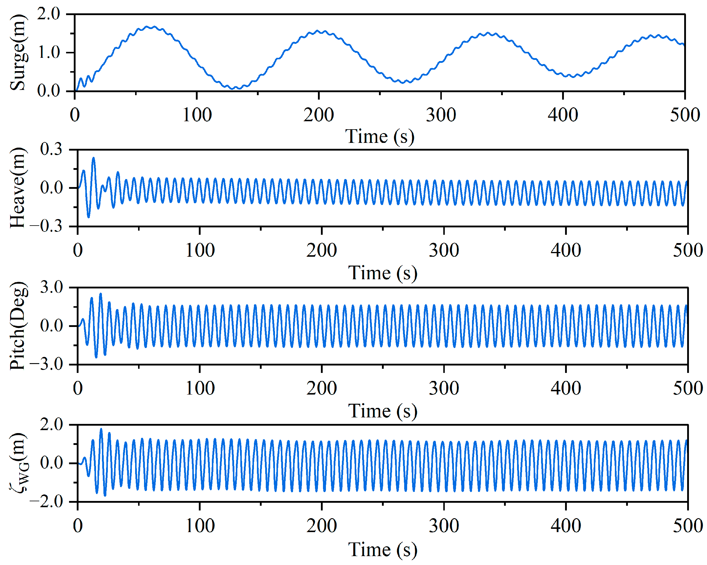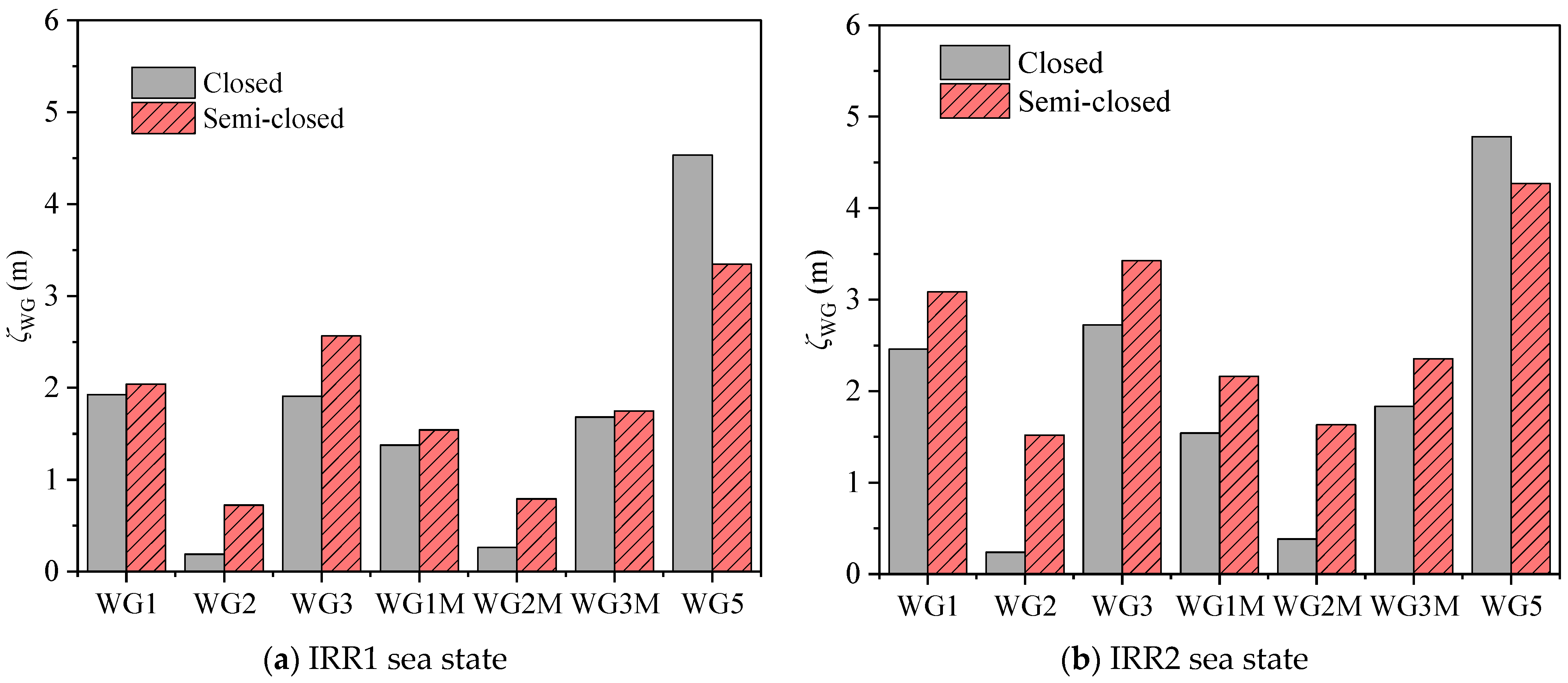 Hs in the experiment was chosen as 2.5 m. Furthermore, additional model tests were conducted for a milder sea state (