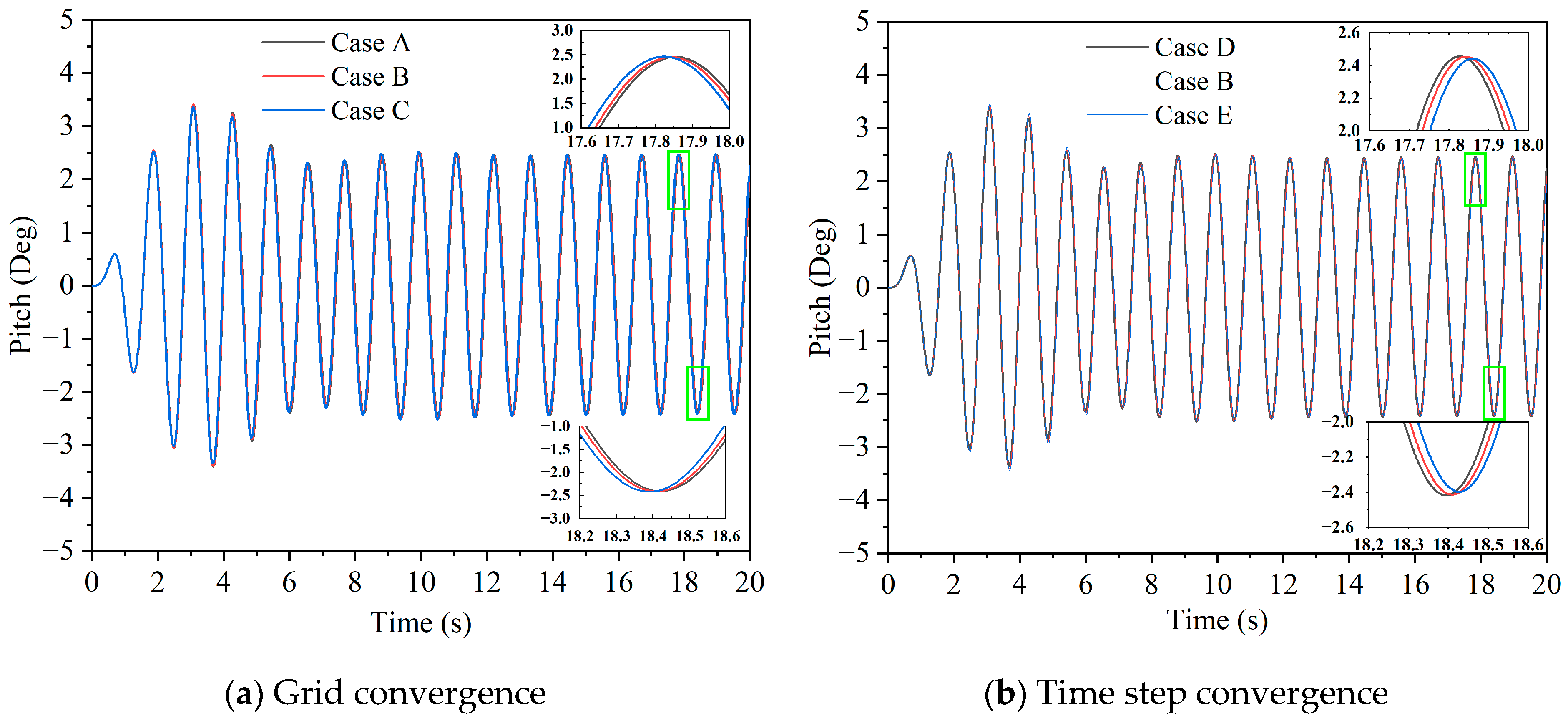 Case | Based Grid Size (m) | Grid Number | Time Step (s) | Pitch Amplitude [13] | Sloshing Amplitude (m) |
