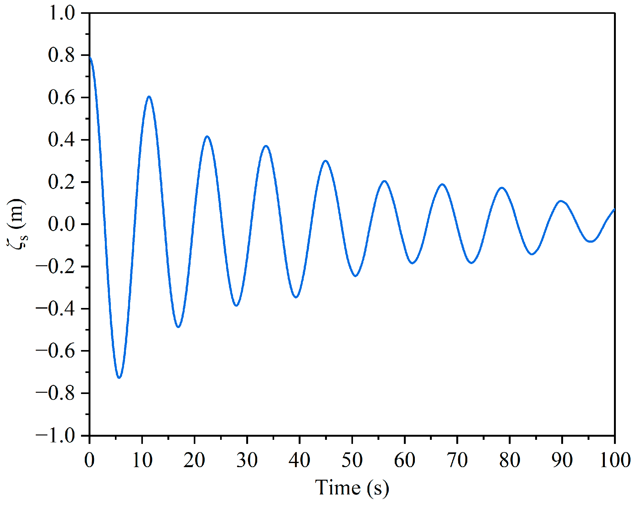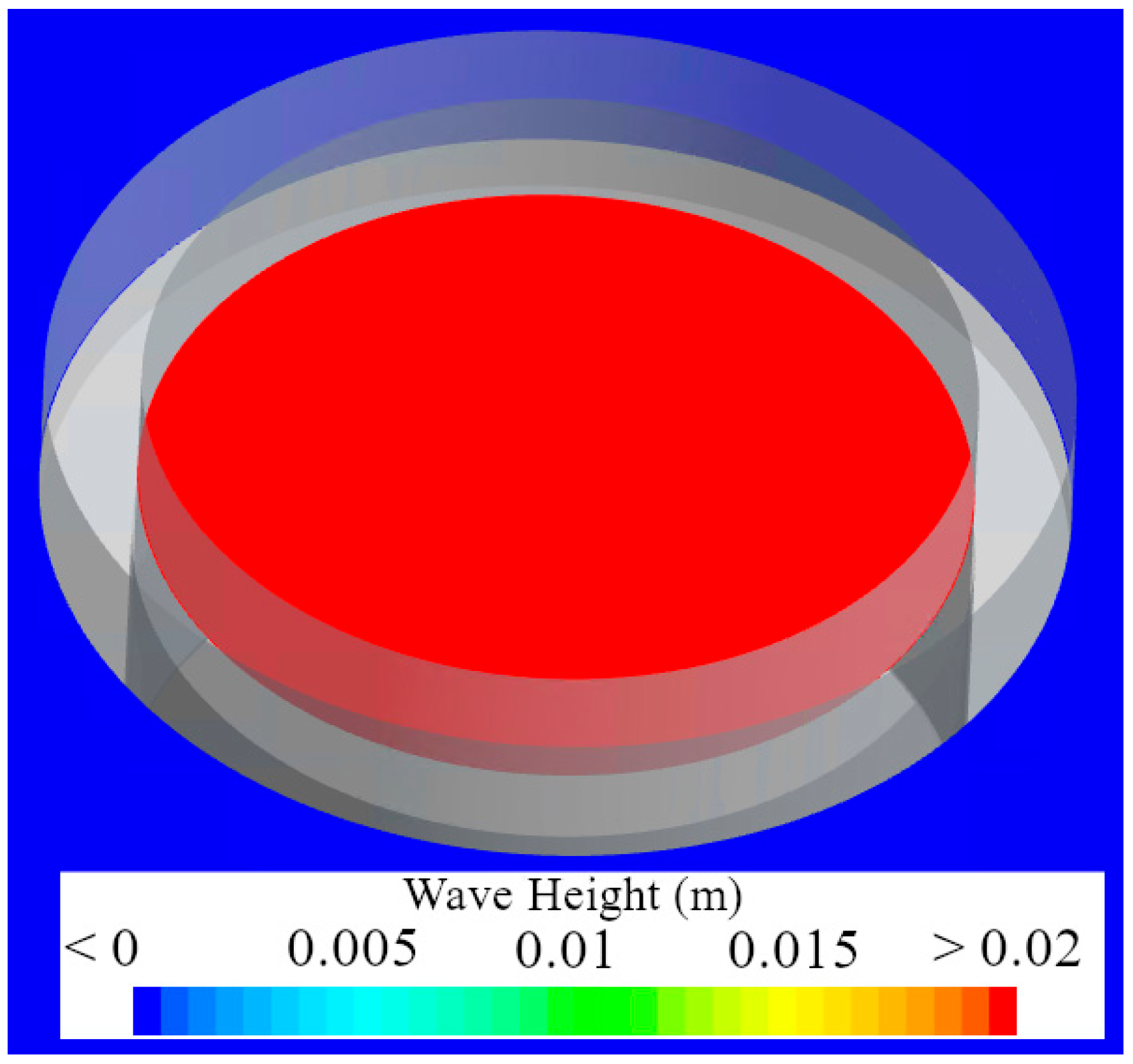 26]. To ensure that the regular waves cover the higher-order sloshing modes as much as possible, the natural period of the sloshing of the aquaculture platform is first estimated. The natural frequency of liquid tank sloshing can be determined as