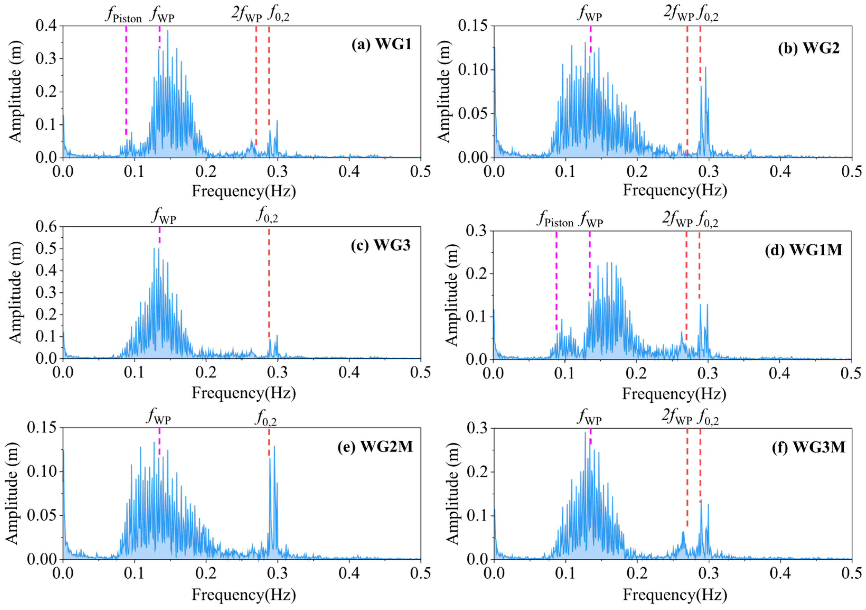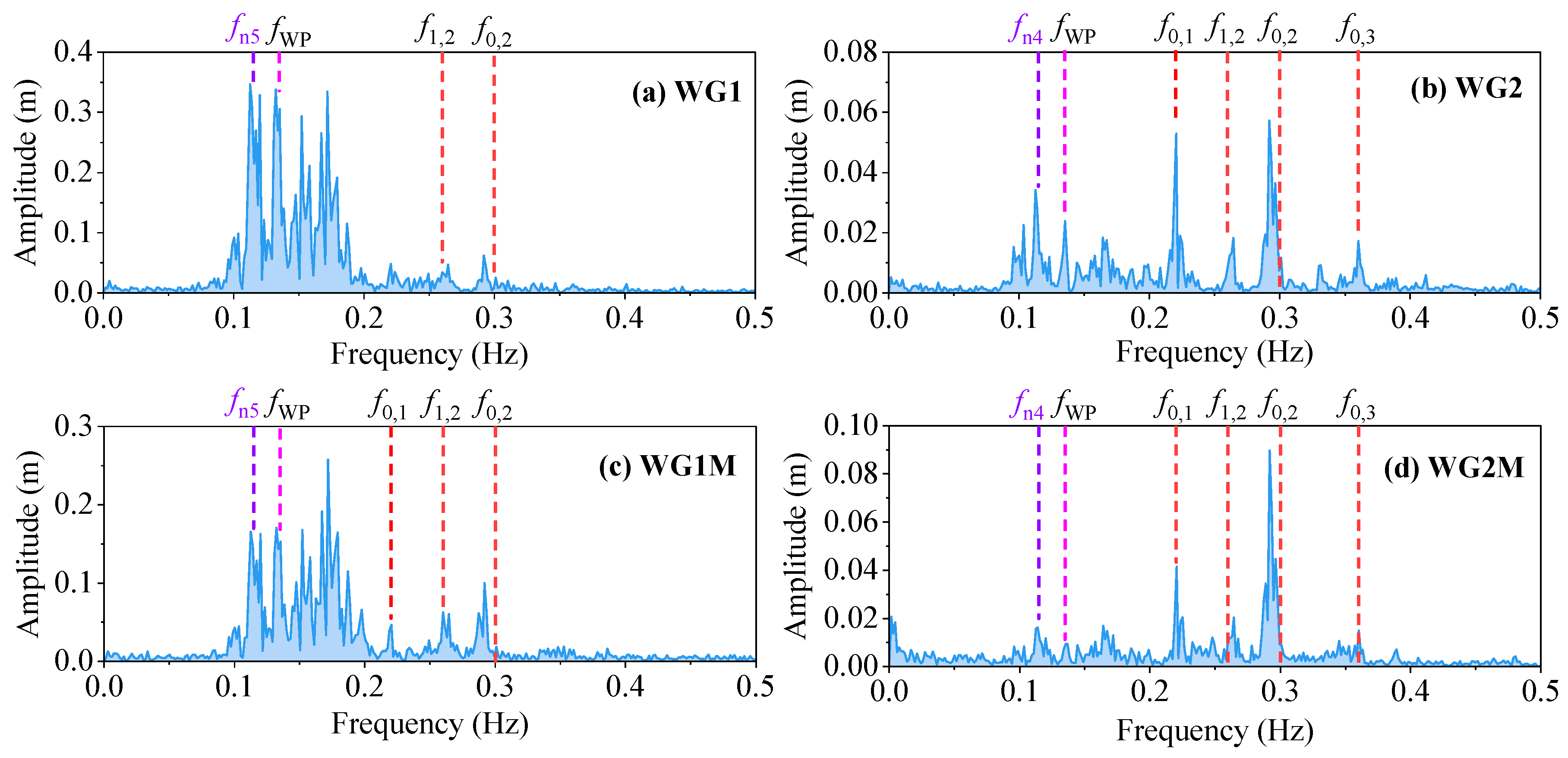 Figure 3 shows the arrangement of the wave gauges. WG0 and WGS are fixed to the towing tank, and the other WGs are installed on the aquaculture platform, moving with the model.