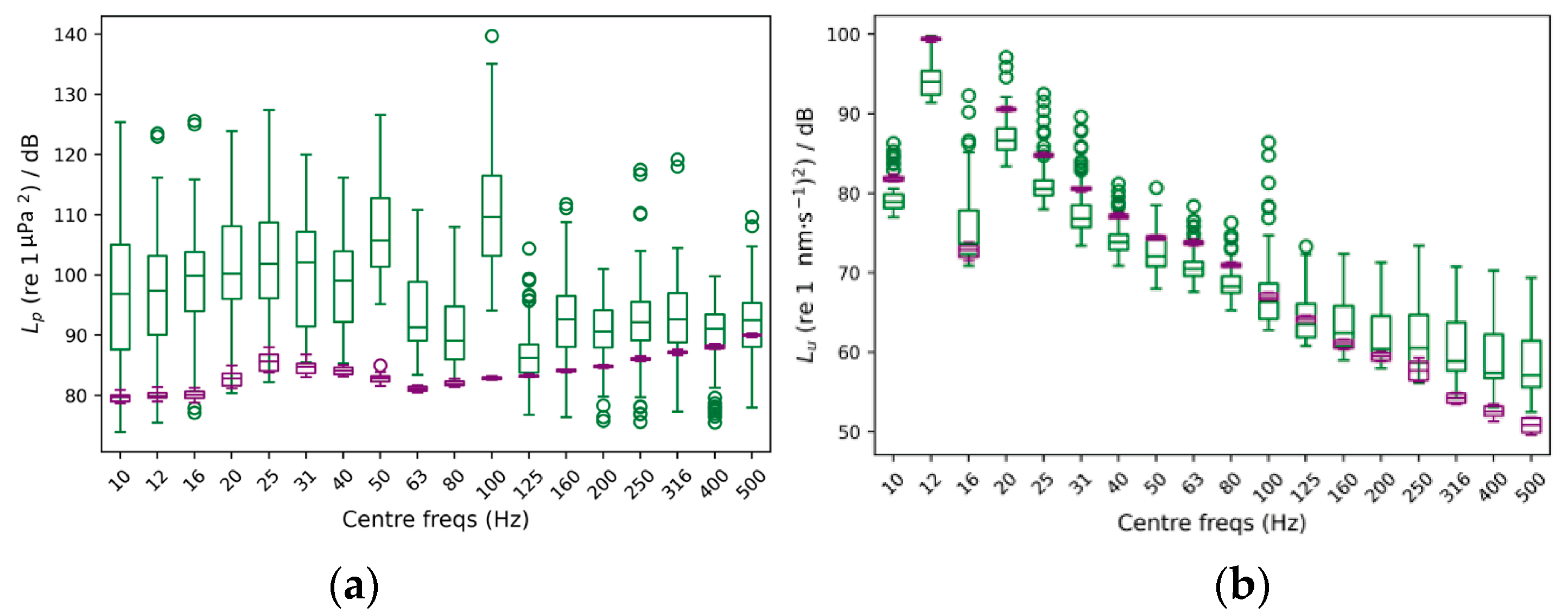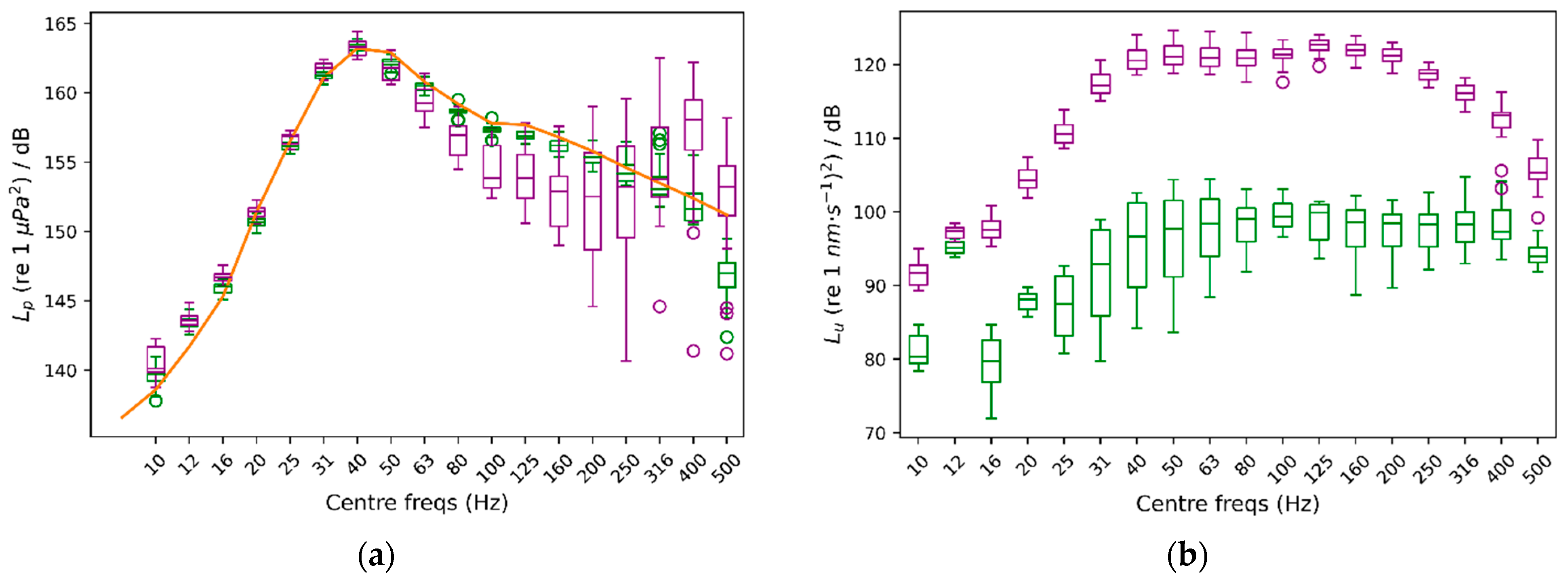 - Nedelec, S.L.; Ainslie, M.A.; Andersson, M.; Cheong, S.; Halvorsen, M.; Linné, M.; Martin, B.; Nöjd, A.; Robinson, S.; Simpson, S.; et al. Best Practice Guide for Underwater Particle Motion Measurement for Biological Applications 2021. Available online: https://repository.oceanbestpractices.org/handle/11329/1884?show=full (accessed on 24 September 2025).