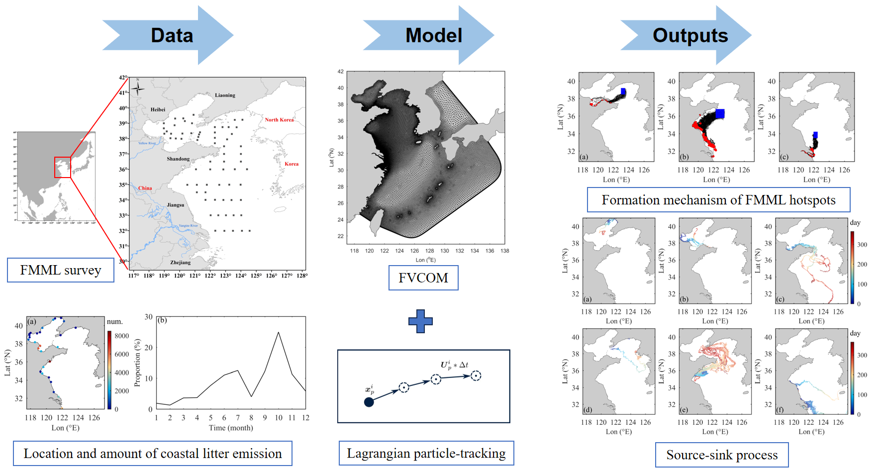 - Sun, Y.C.; Cao, L.; Wang, Y.T.; Chen, W.; Li, Y.; Zhao, X.Z. Sources and distribution of microplastics in the East China Sea under a three-dimensional numerical modelling. Environ. Pollut. 2022, 311, 119910. [Google Scholar] [CrossRef]