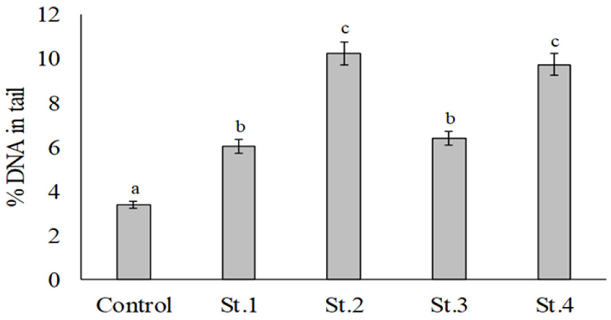 - Kilemade, M.F.; Hartl, M.G.; Sheehan, D.; Mothersill, C.; Van Pelt, F.N.; O’Halloran, J.; O’Brien, N.M. Genotoxicity of field-collected inter-tidal sediments from Cork Harbor, Ireland, to juvenile turbot (Scophthalmus maximus L.) as measured by the Comet assay. Environ. Mol. Mutagen. 2004, 44, 56–64. [Google Scholar] [CrossRef] [PubMed]
