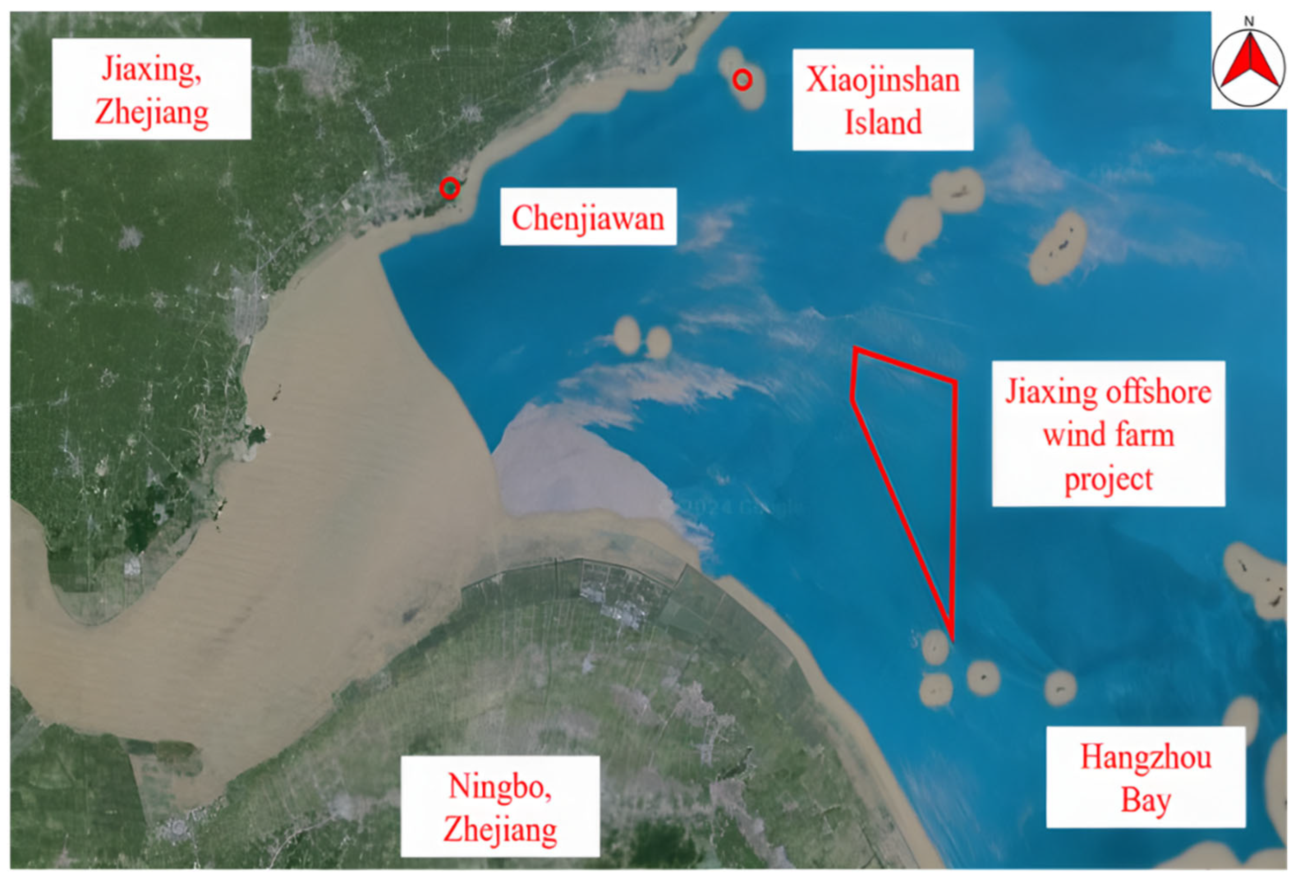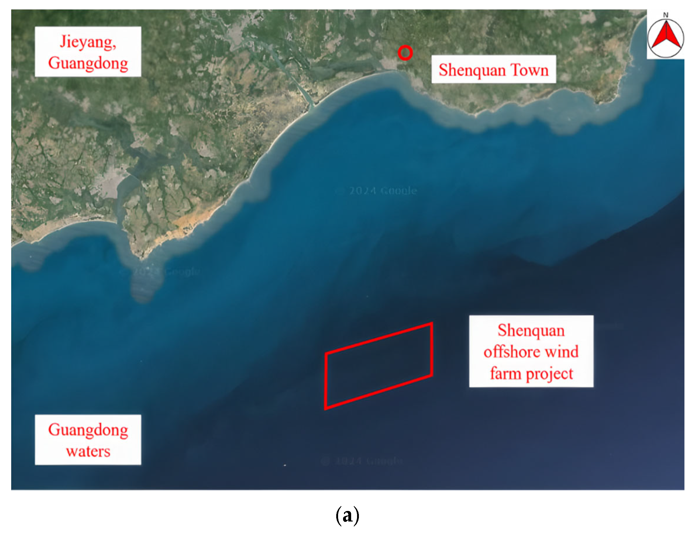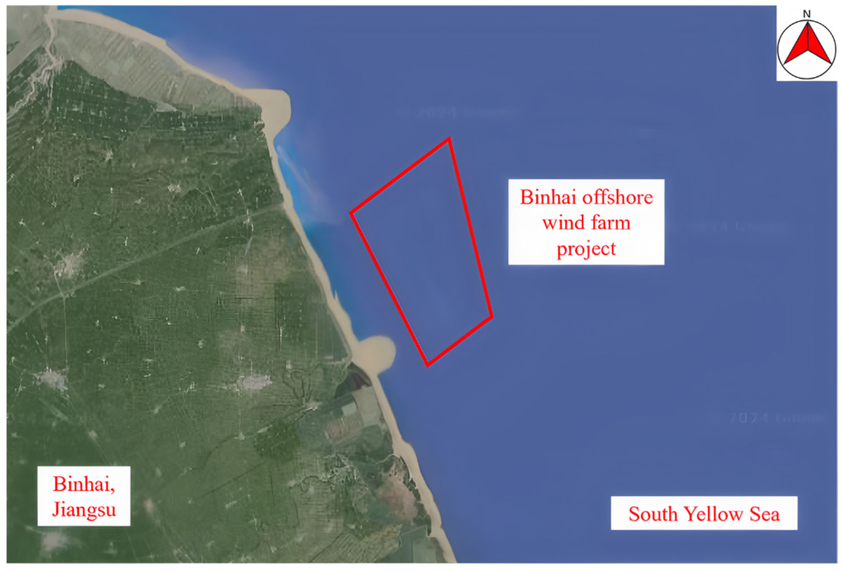 Figure 8). The project planned to install 32 offshore wind turbines, each with a capacity of 6.25 MW, for a total energy capacity of 200 MW. Based on the preliminary assessment,