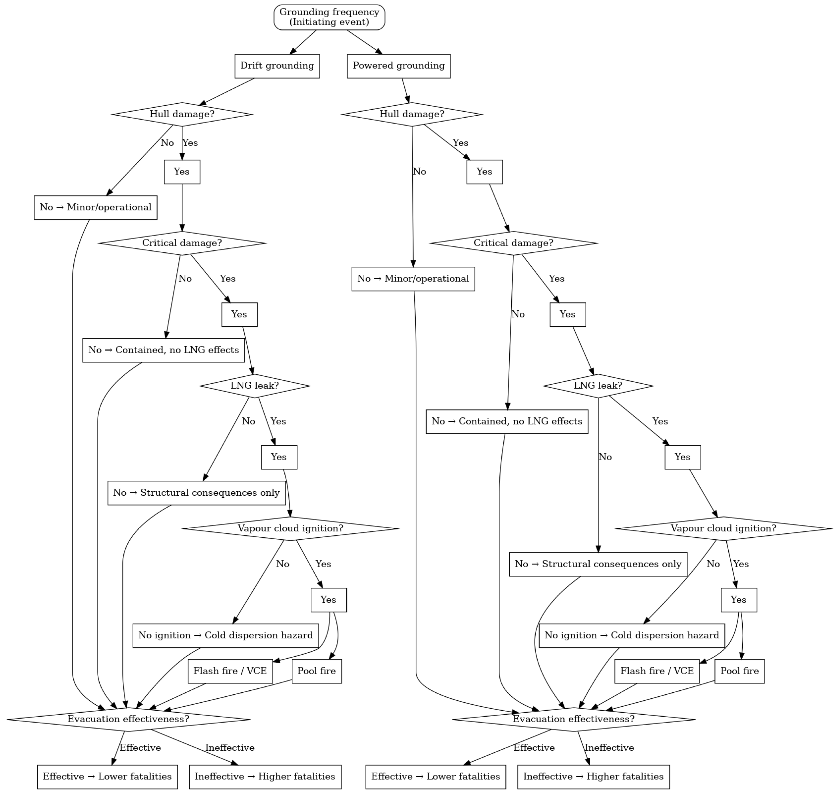 Figure 7. Simplified general event tree for grounding scenarios on LNG-fuelled cruiser.