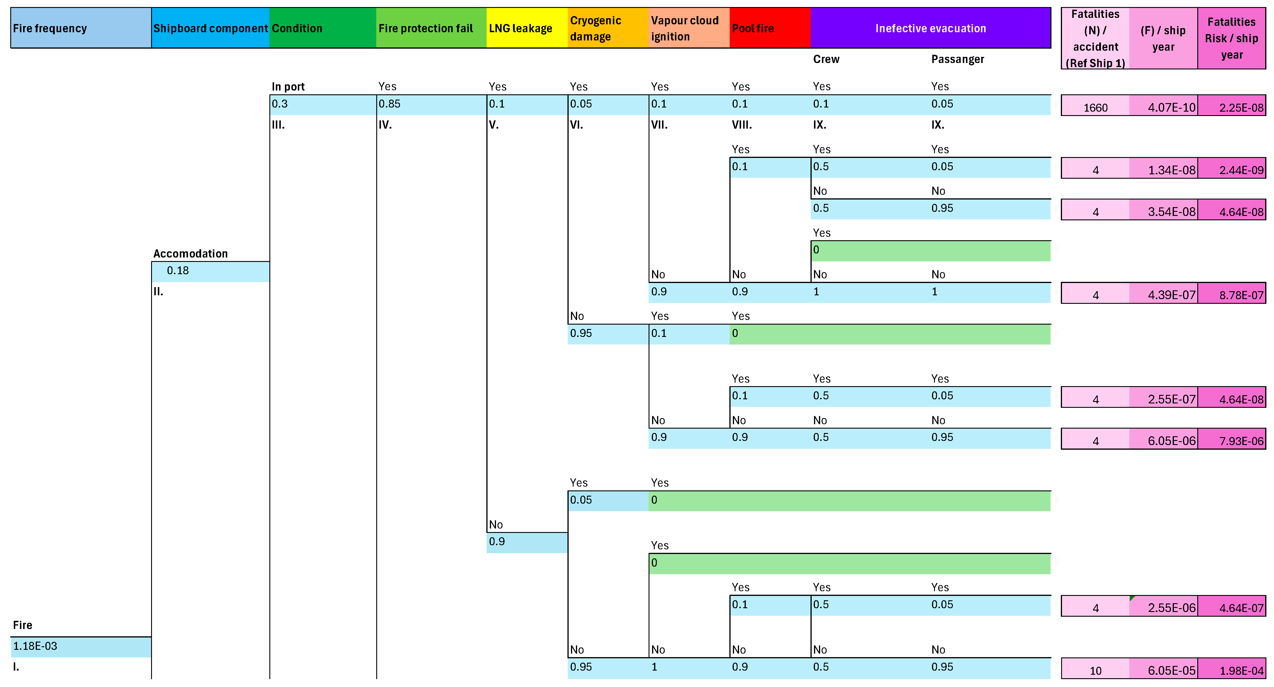 Figure 8. LNG-fuelled cruise ship event tree for fire/explosion (top part).