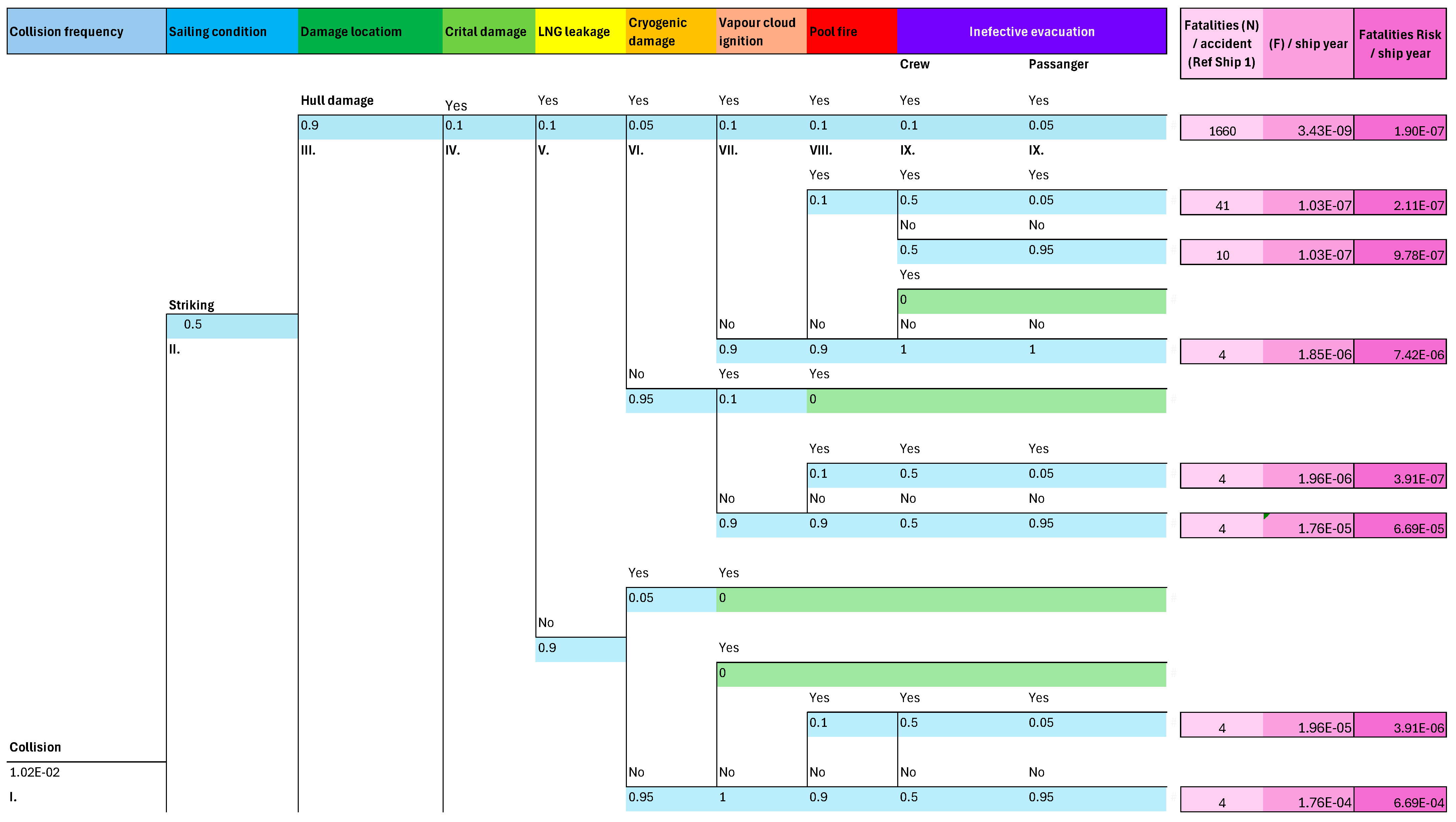 Figure 9. LNG-fuelled cruise ship event tree for collision event (top part).