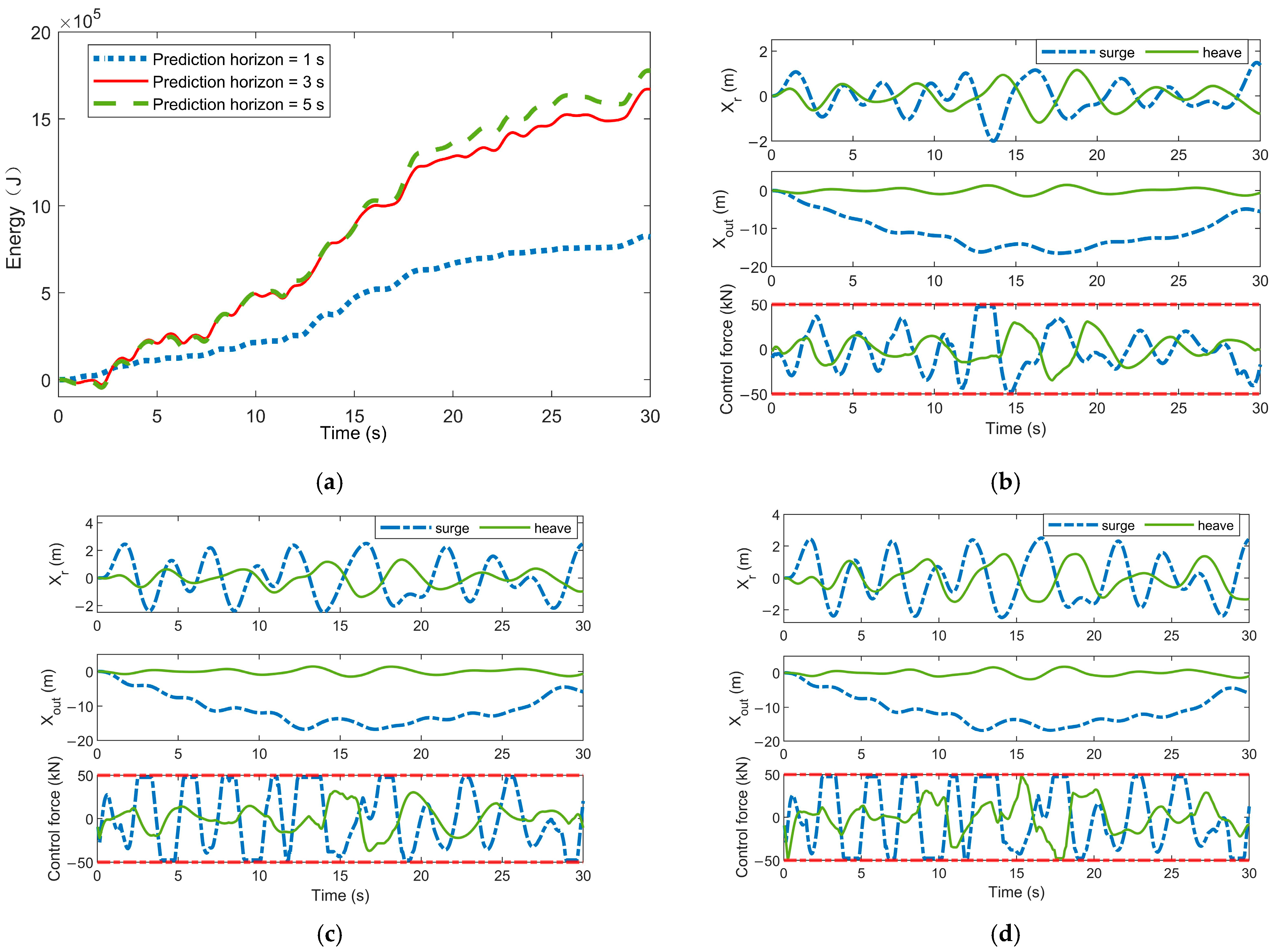 - Ligeikis, C.H.; Scruggs, J.T. Causal, Stochastic MPC for Wave Energy Converters. IEEE Trans. Control Syst. Technol. 2024, 32, 351–367. [Google Scholar] [CrossRef]