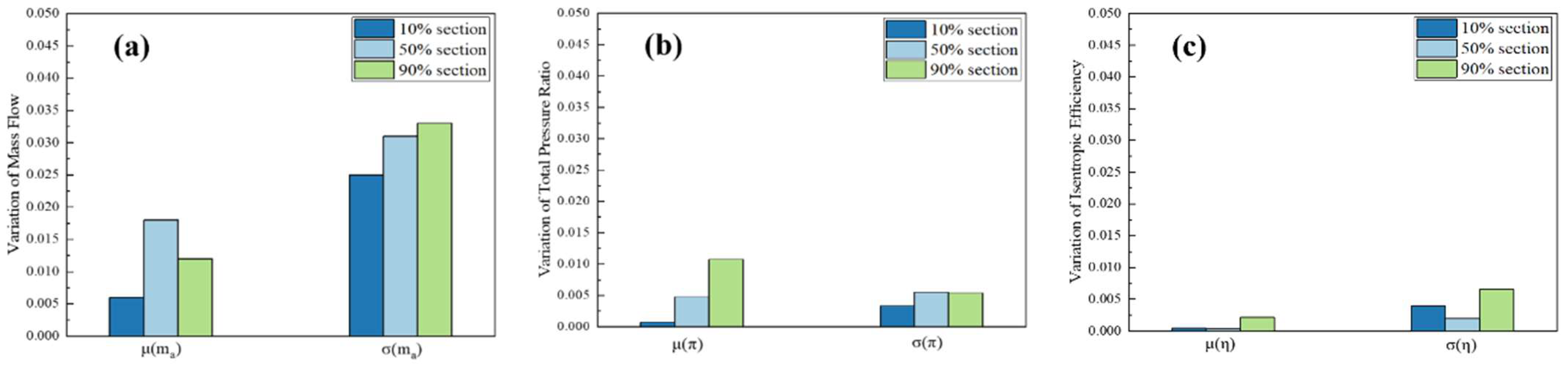 This research specifically focused on the influence of manufacturing variability on a single blade within the rotor. Given that manufacturing variability typically exhibits spatial variation across different blades within a rotor assembly, future work will aim to analyze the aerodynamic performance impact of deviations present on multiple blades, incorporating their spatial distribution characteristics.