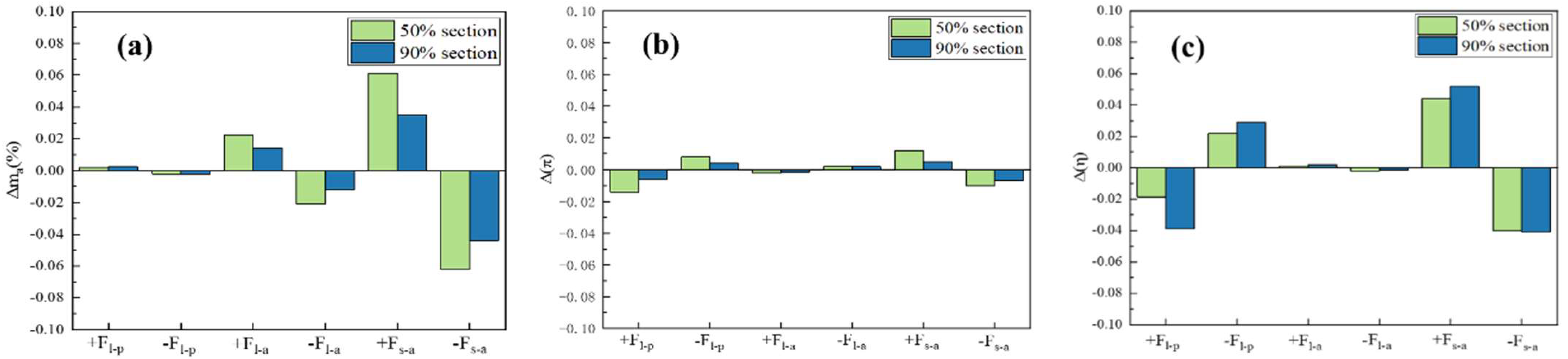 20] examined the effects of variations in the stagger angle on aerodynamic performance and revealed that deviations with a circumferential sinusoidal distribution significantly mitigate adverse impacts on compressor performance. Moreover, in the context of 3D blades, the uncertainty in blade tip clearance originating from blade height deviation also affects aerodynamic performance. Rendu et al. [