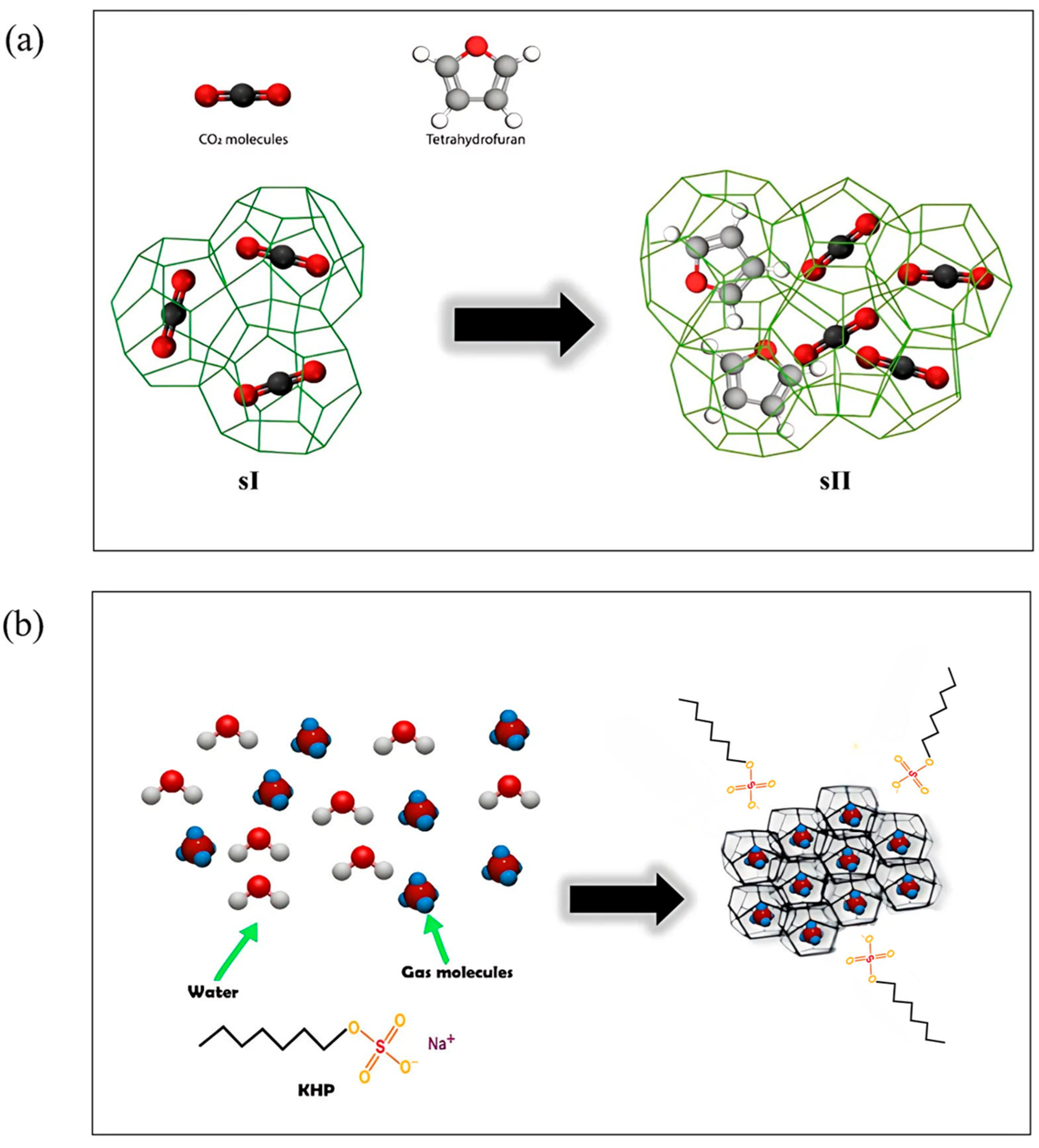 - Rukh, M.; Rahman, M.S.; Sakib, K.M.N.; Pantha, S.C.; Hasan, S.; Jabeen, M.; Islam, M.S. A Comprehensive Review of Semi-Clathrate Hydrates for CO2 Capture: Characterizations, Mechanism and Role of Promoters. Carbon. Capture Sci. Technol. 2024, 12, 100217. [Google Scholar] [CrossRef]