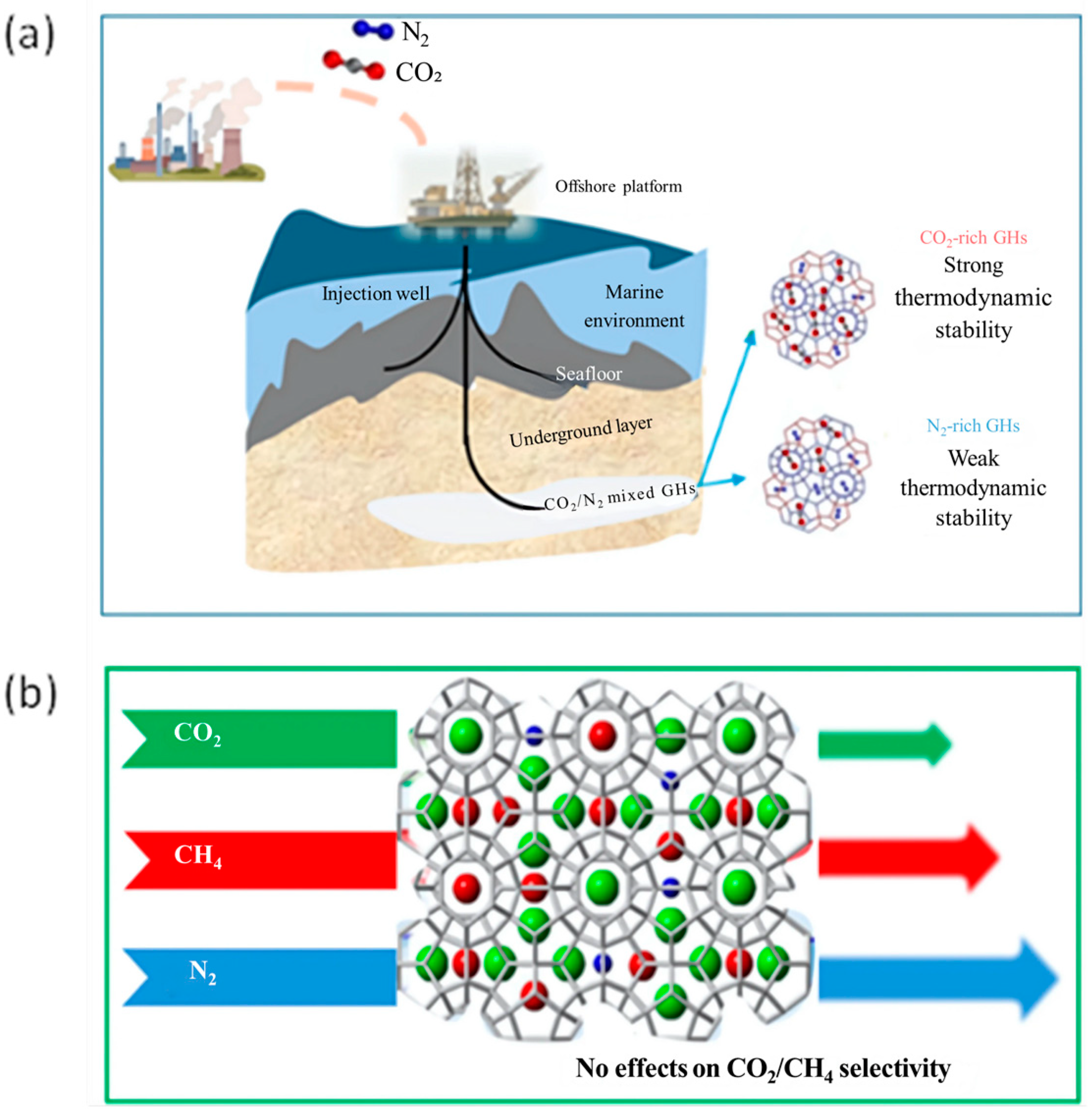 - Mahmood, M.N.; Gupta, A.S.; Islam, M.T. CO2 Storage in Natural Gas Hydrate Reservoirs: A Review on Prospects and Challenges Ahead. Next Res. 2024, 1, 100017. [Google Scholar] [CrossRef]